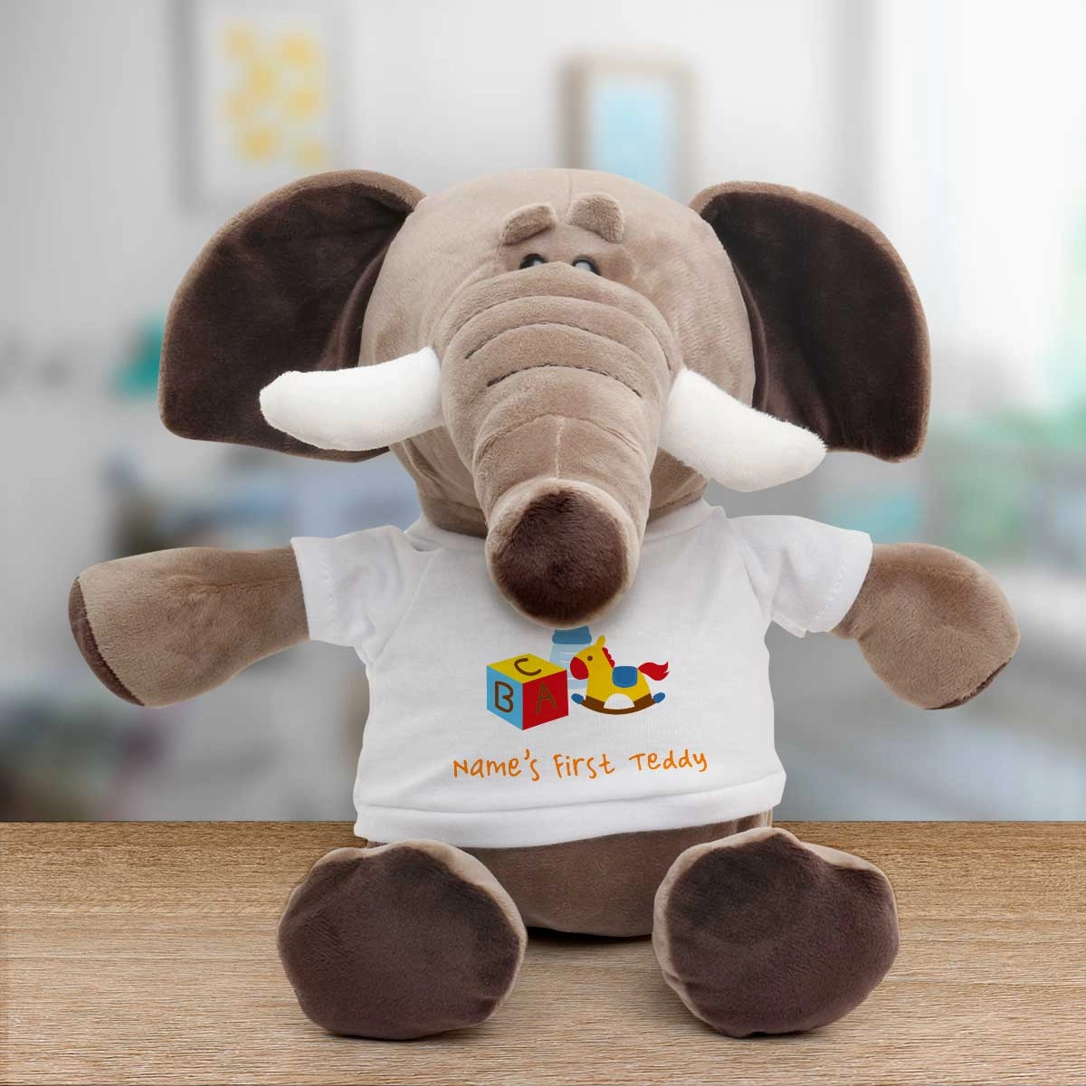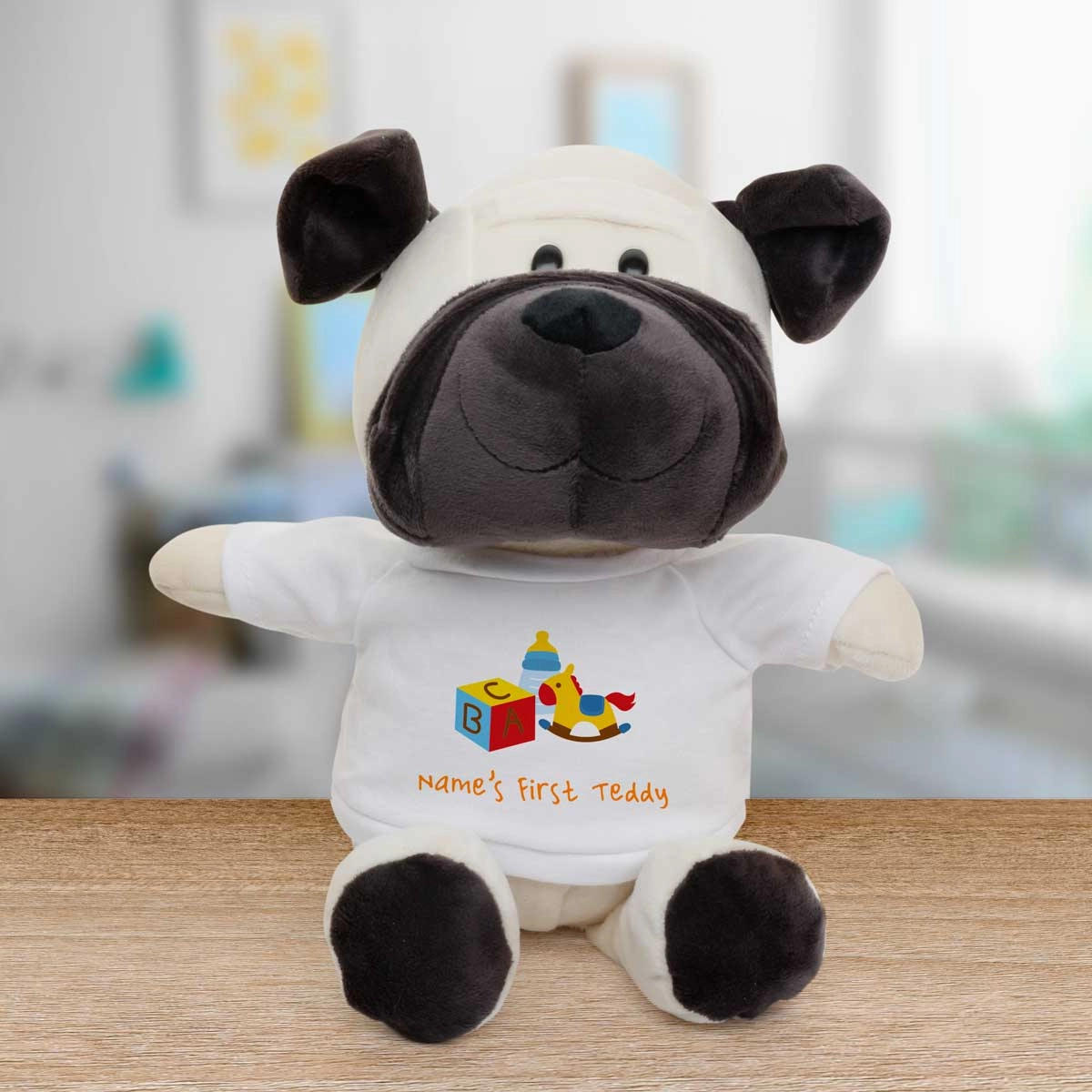 The animal's t-shirt is personalised to include your special message.