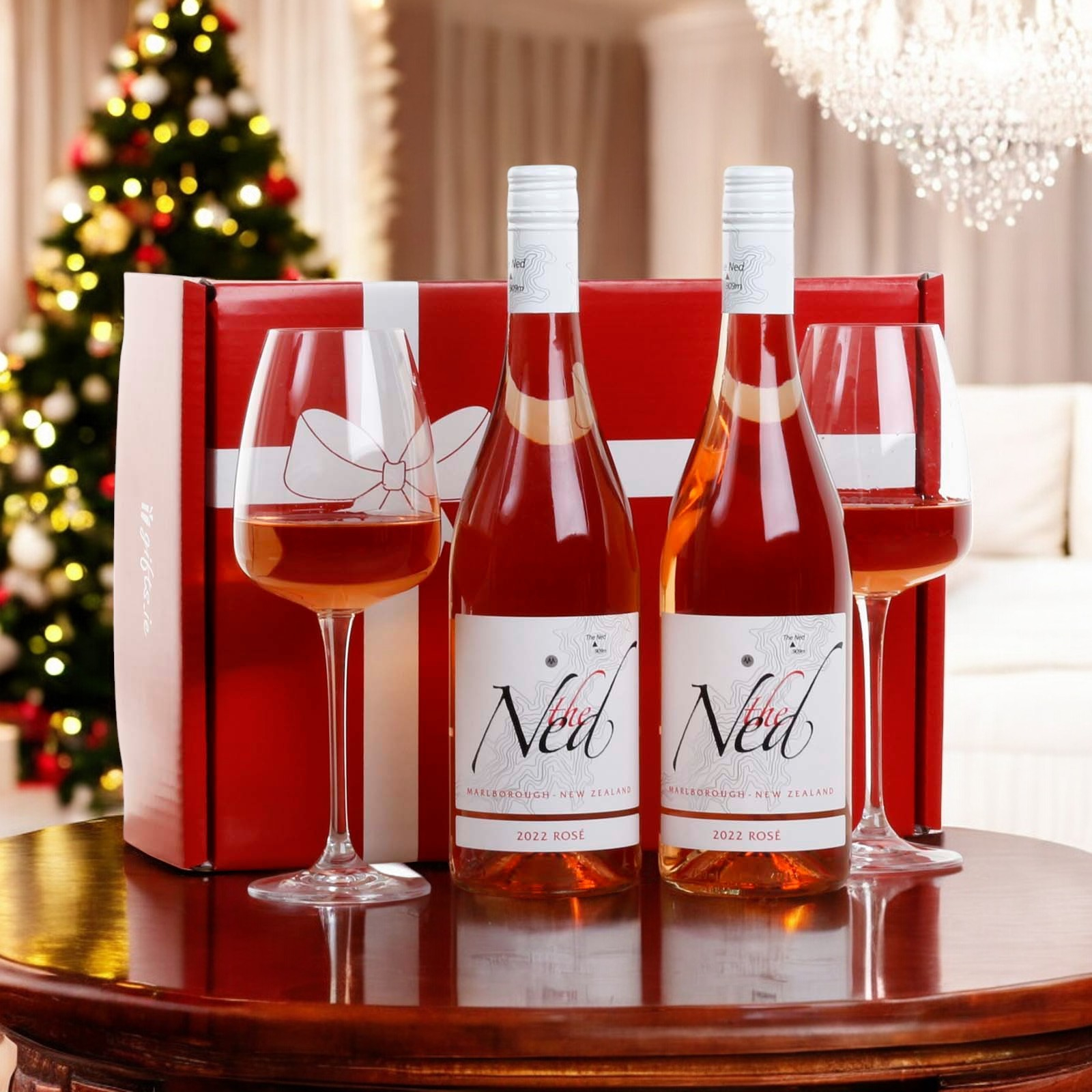 Elevate any occasion with the elegant charm of The Ned Rosé 2022 Gift Set. This beautifully presented package features two bottles of The Ned’s award-winning Marlborough Rosé, each showcasing a vibrant blush hue and refreshing notes of wild strawberry, watermelon, and a hint of citrus zest.