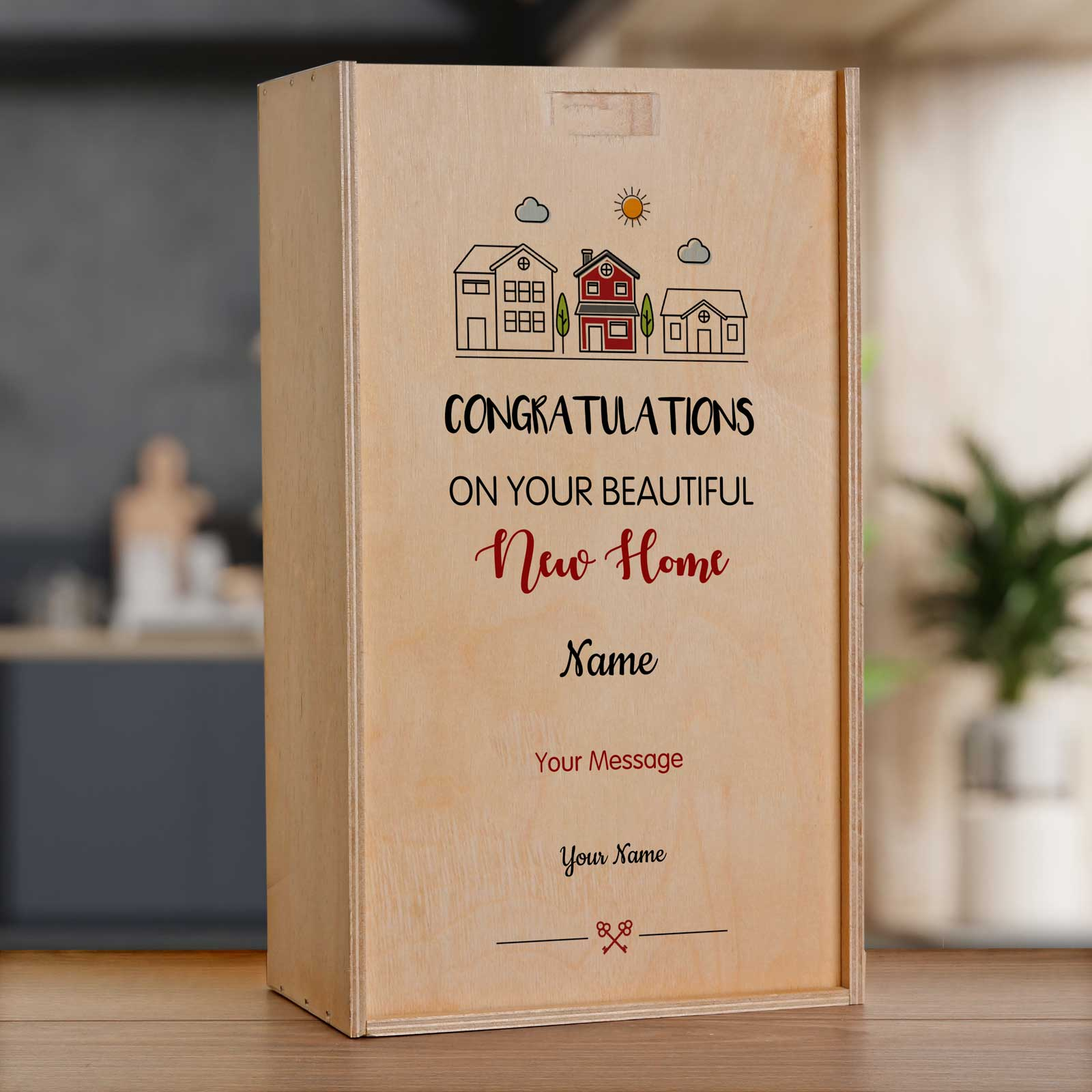 Celebrate a New Beginning with the Personalised Wooden Double Wine Box – The Perfect New Home Gift!