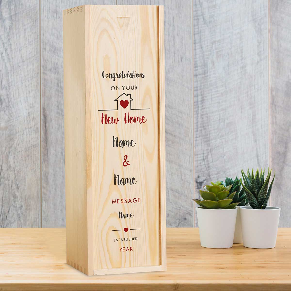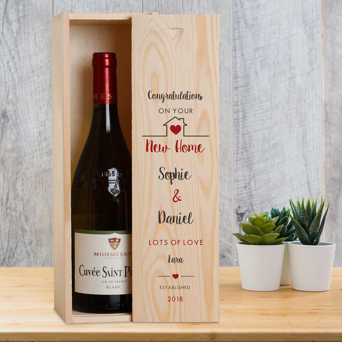 This personalised wine box with a bottle of wine makes the perfect gift to congratulate your recipients on their New Home.