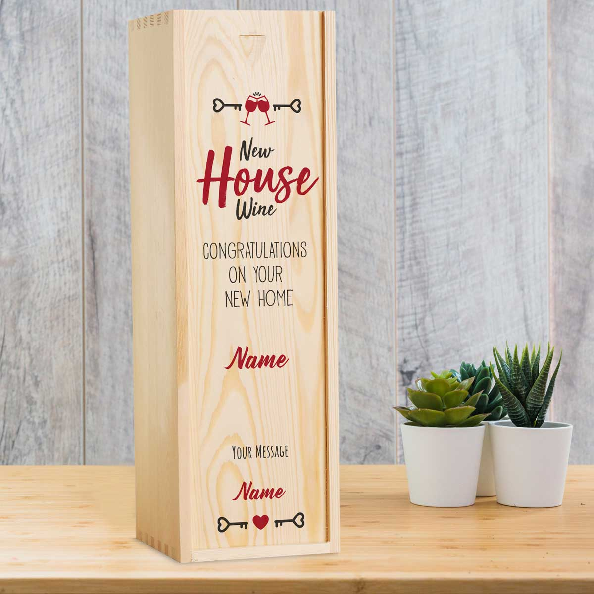 This personalised wine box with a bottle of wine makes the perfect New Home gift.