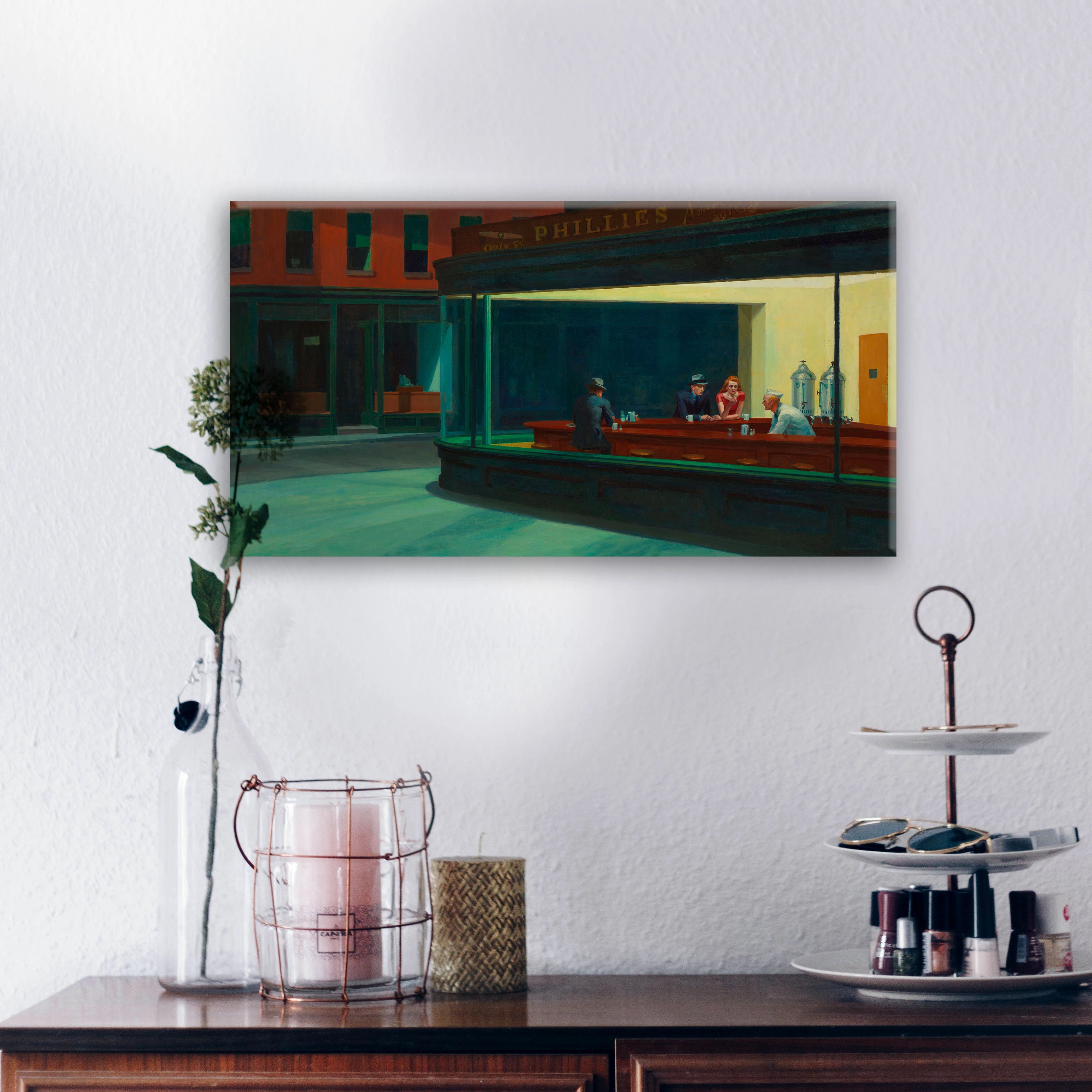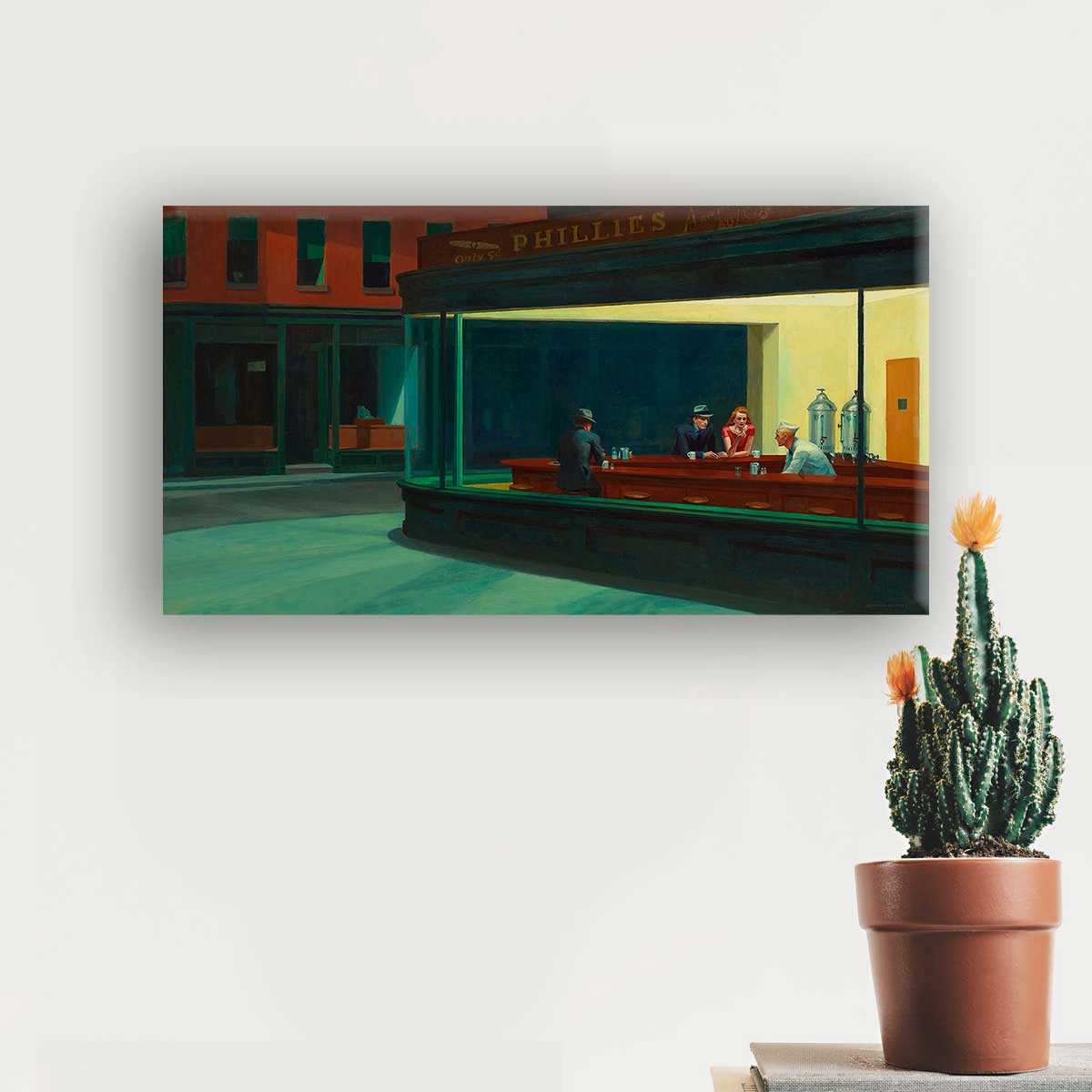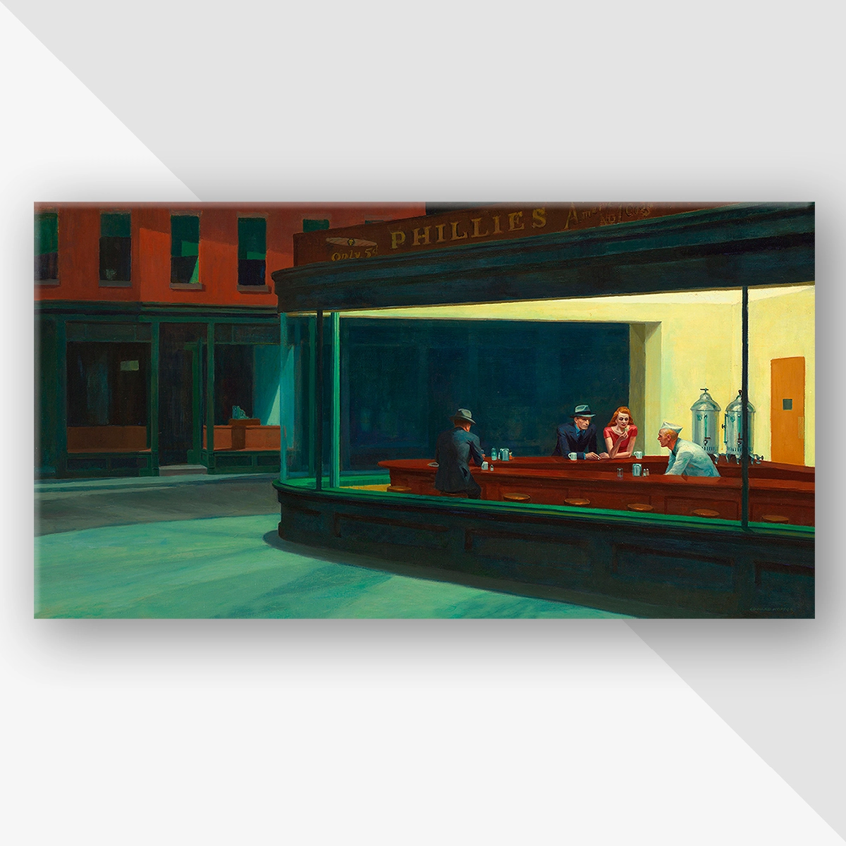 Our beautiful Nighthawks by Hopper stretched canvas makes fantastic gifts for all occasions. They are printed on a high-quality, vibrant canvas that produces brilliant results. Whether placed in a living room, a bedroom, or a nursery these long-lasting prints will be treasured for years to come. It is mounted onto a box frame. It is ready to hang straight from the box.