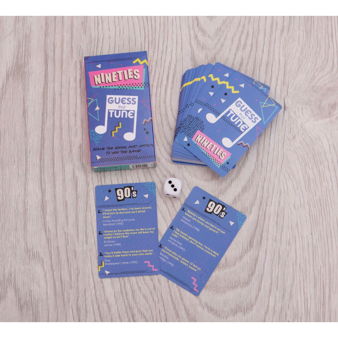 TEST YOUR MUSIC KNOWLEDGE - Roll the dice and guess the nineties tune on the card to earn points and show your friends you're top of the pops!