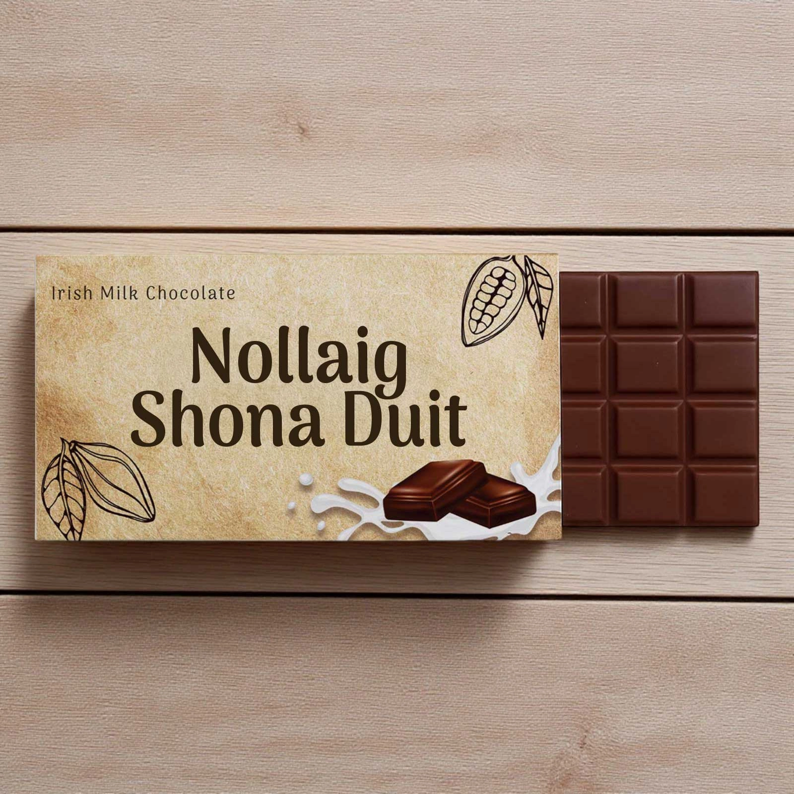 Packaged in a beautifully designed wrapper with the words "Nollaig Shona Duit" in bold letters, which means Happy Christmas in Irish, this chocolate bar is sure to add a touch of festive cheer to any holiday celebration.