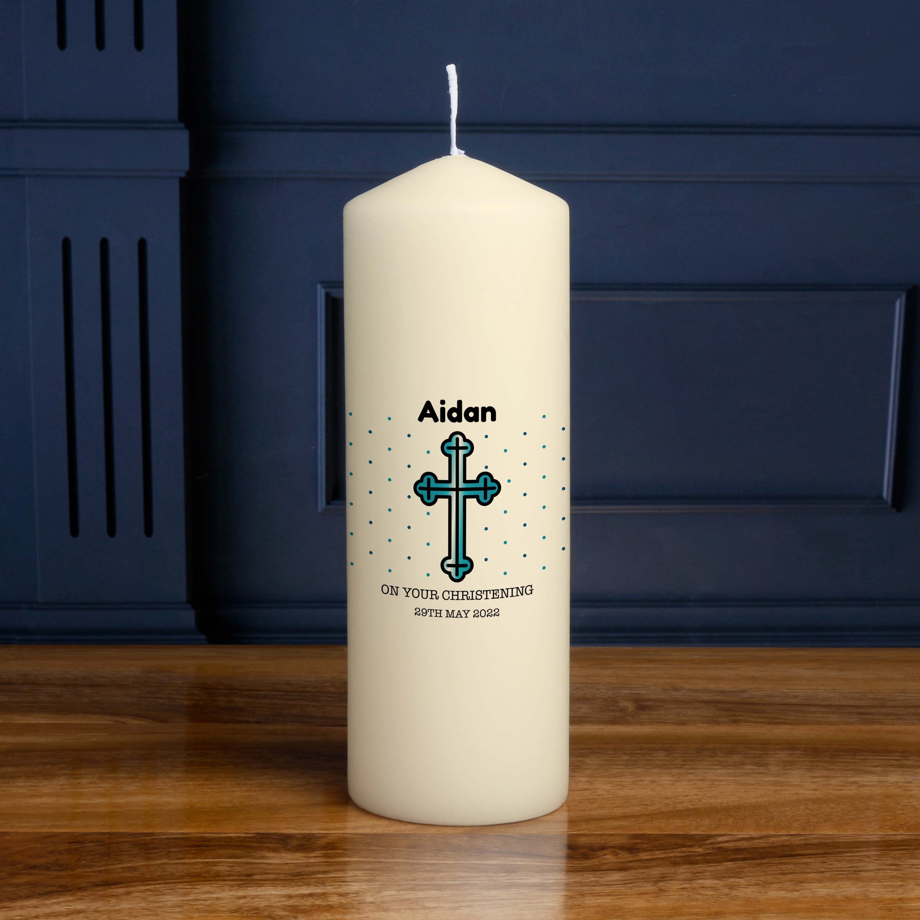 On The Christening Of Any Name Cross - Personalised Candle