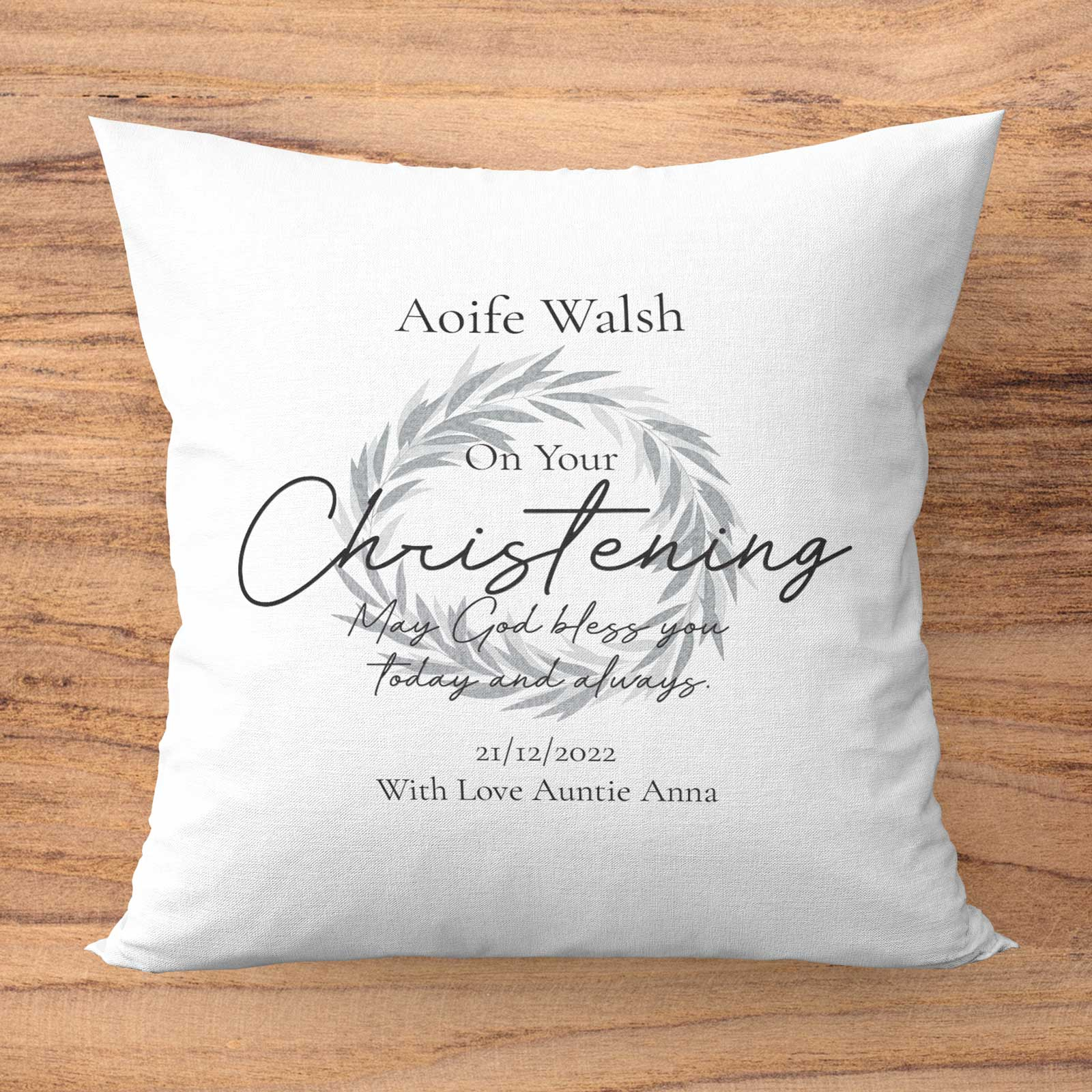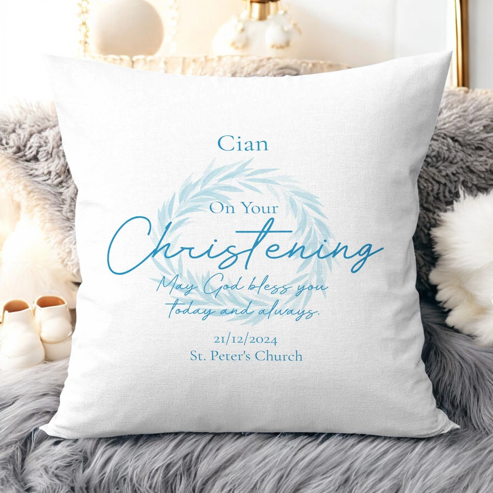 Celebrate a special Christening with our personalised cushion, add any name, date and message. A perfect keepsake for cuddles or display, it’s a thoughtful gift for this meaningful occasion.Size: 36 x 36 cm