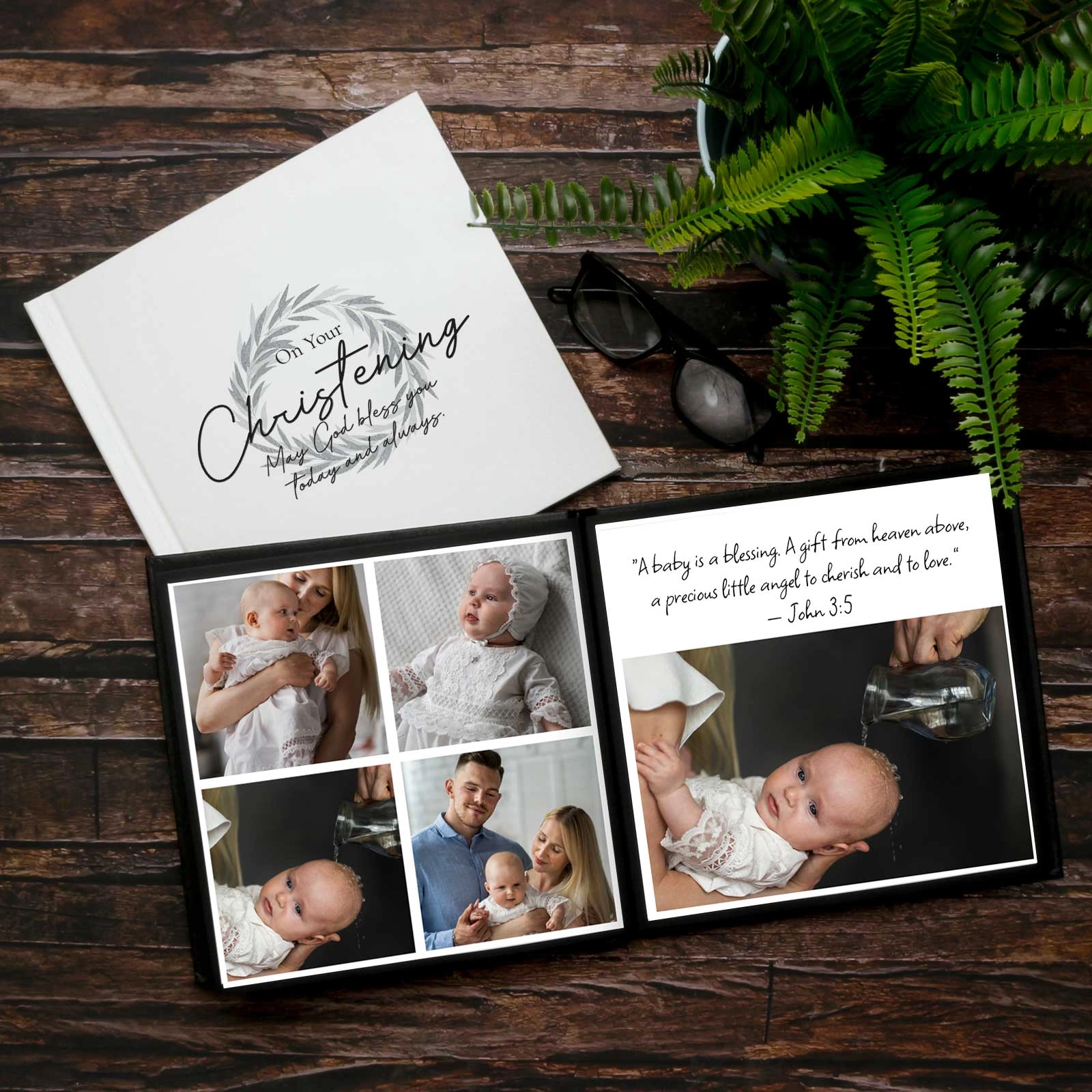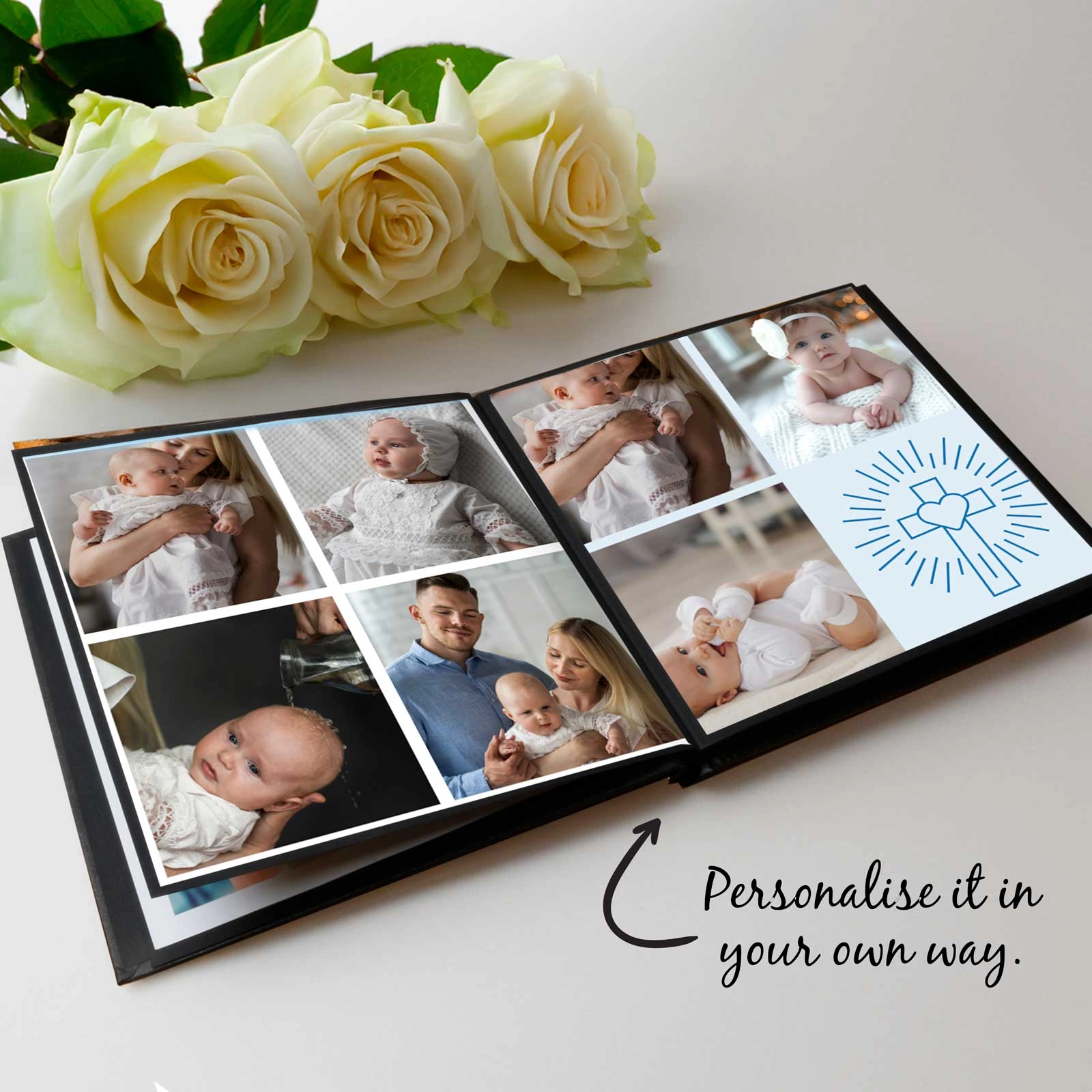 Create your own Photo Book, the perfect gift for any child Christening. Parents, grandparents and all the family will truly cherish this wonderful keepsake gift. Preserve your cherished baby moments in this unique and captivating hardcover Photo Book - these memories last the child's lifetime!