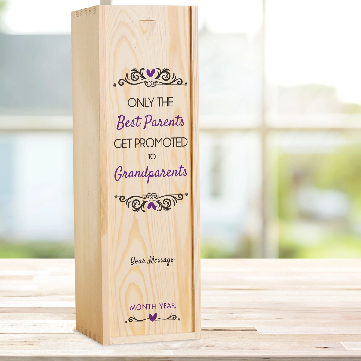 This personalised wine box with a bottle of wine makes the perfect gift. A great keepsake gift for grandparents on the announcement of the expected birth of their grandchild.