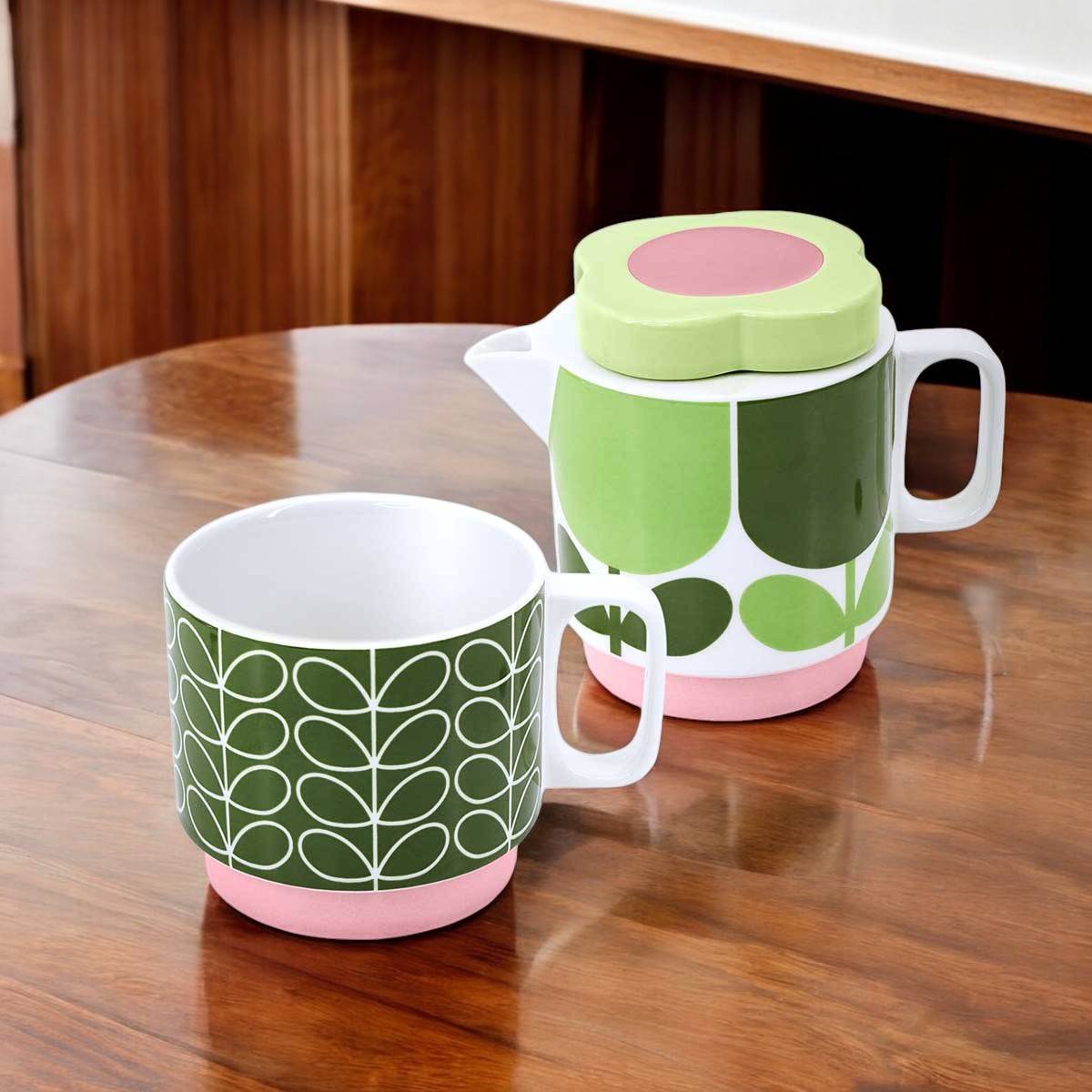 Orla Kiely Stackable Tea Set For One in Block Flower Fern.