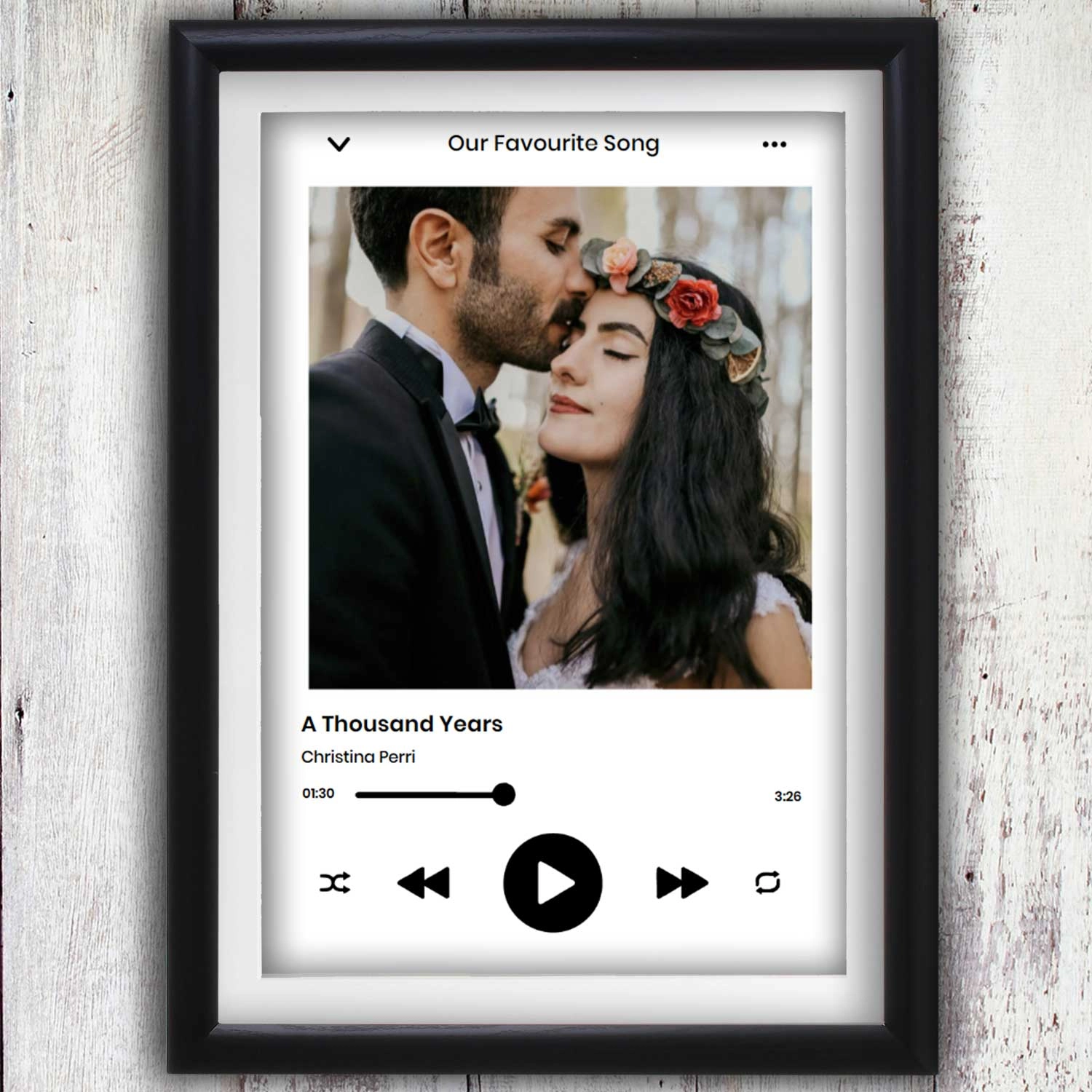 Create a truly unique keepsake by adding your own picture, song title, artist name, and even the track duration. Whether it’s “your song” from a memorable date, wedding, or friendship milestone, this vibrant A3 print is a heartfelt tribute to that unforgettable moment.