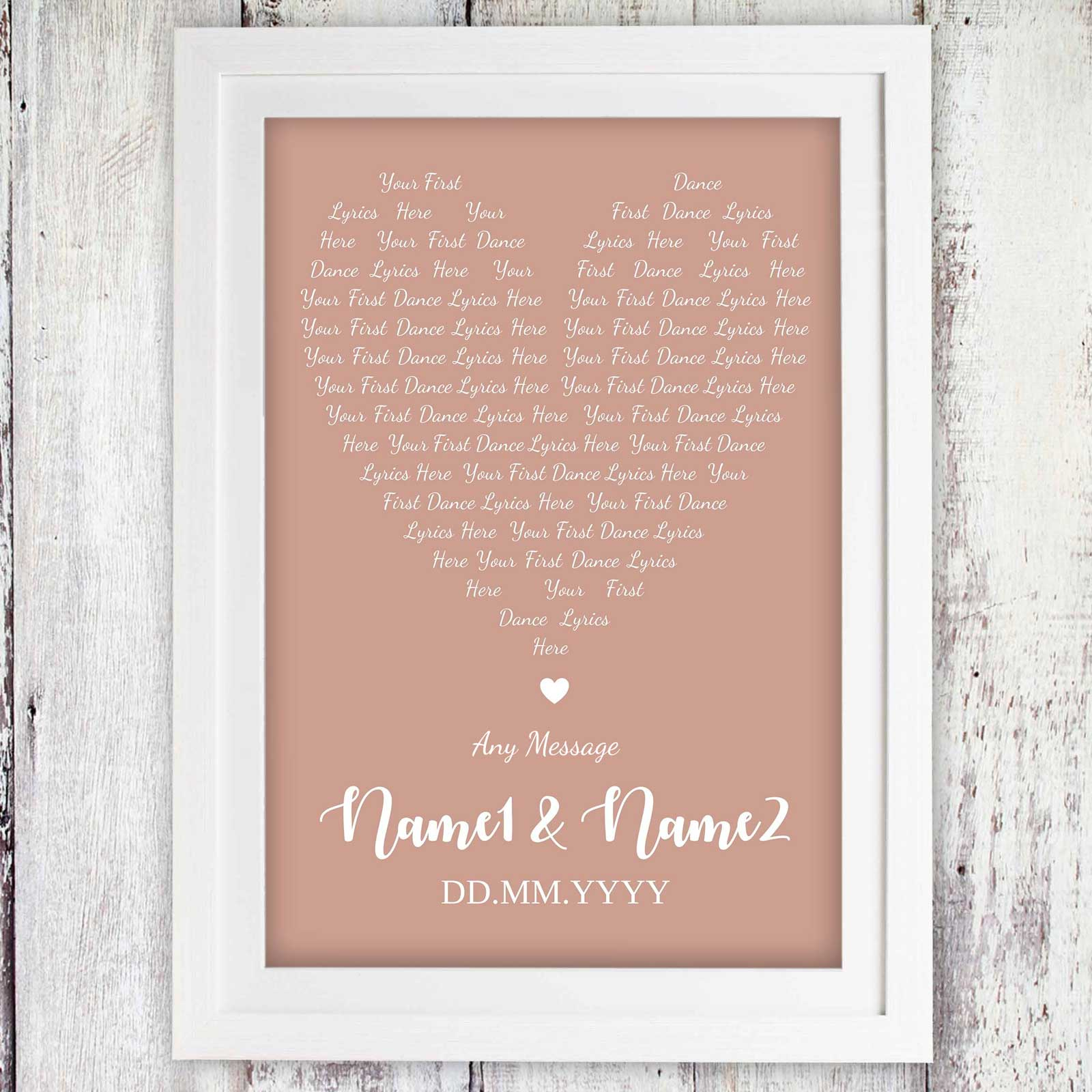 Simply find the lyrics to the couple's first dance at their wedding (or their favourite song) and then copy and paste the lyrics into the box provided. (UP TO A MAXIMUM WORD COUNT OF 980)