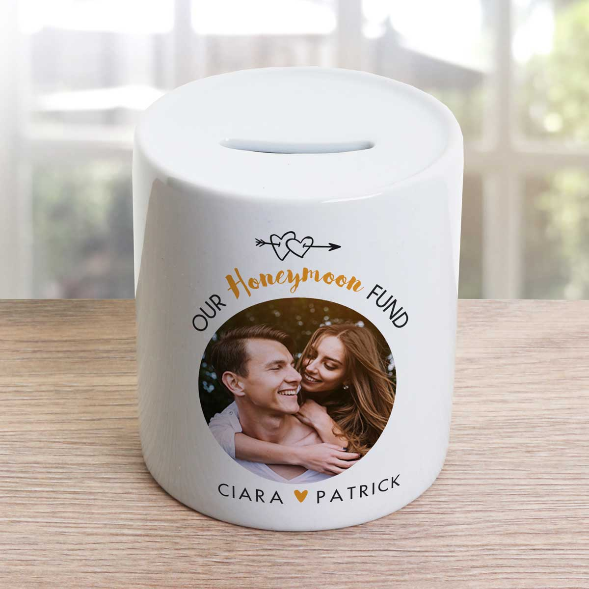 Our personalised money jars make fantastic gifts for many occasions and make wonderful keepsakes. Practical and thoughtful, what a perfect gift to kick start a couple's honeymoon fund!