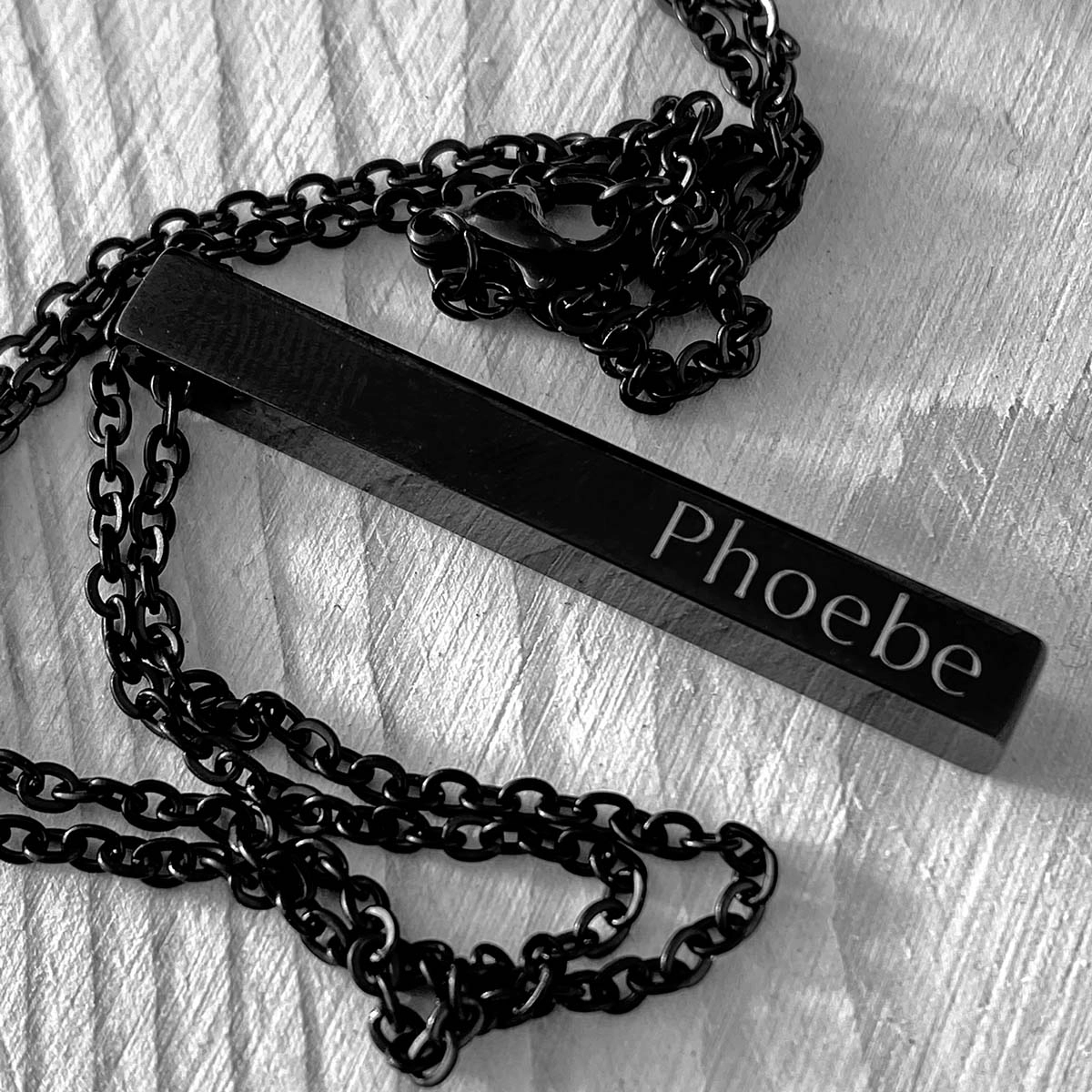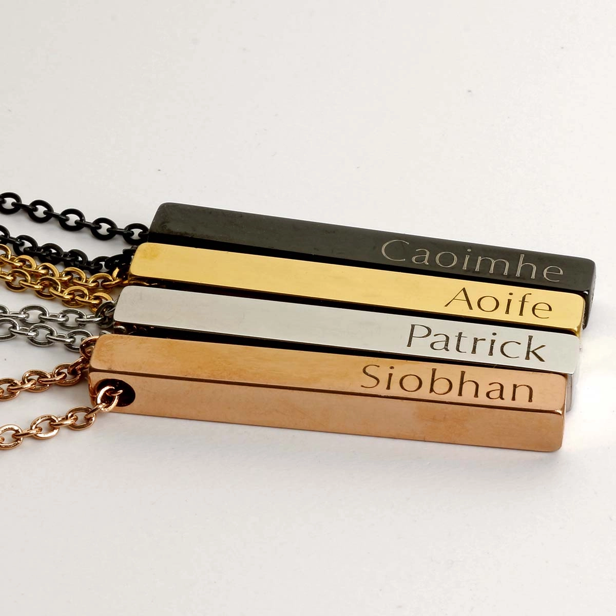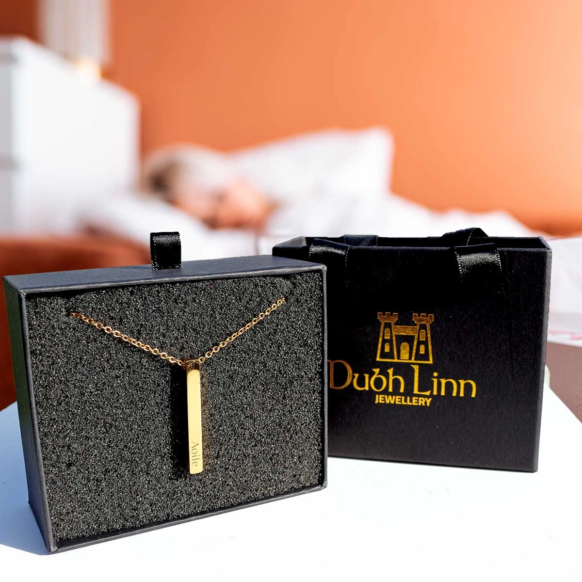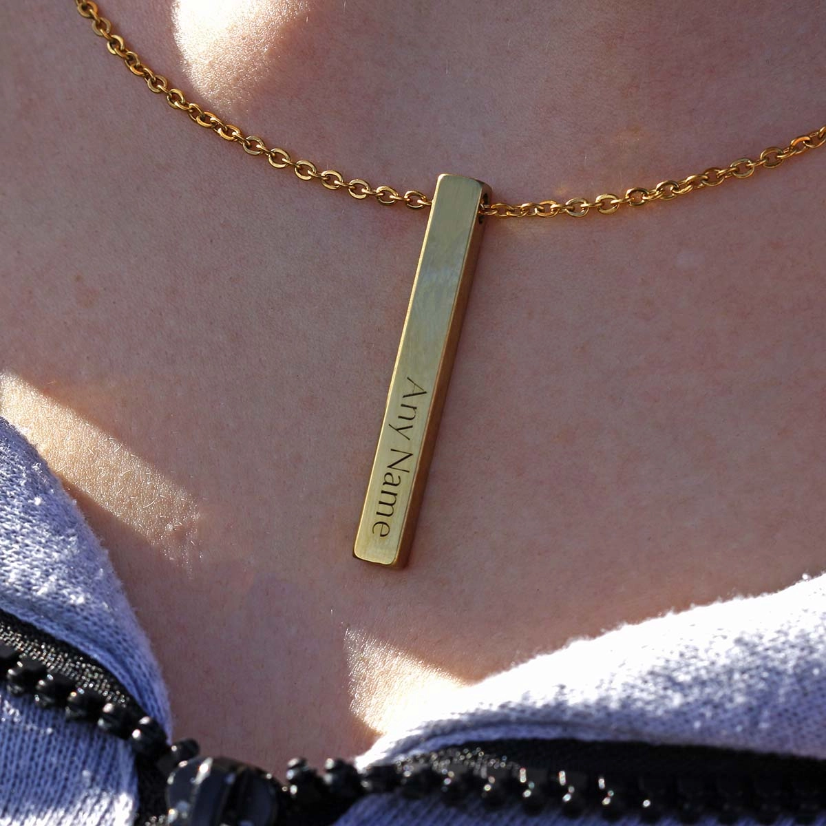 The Personalised Vertical Bar Pendant hanging from a Box chain, makes the perfect accessory for any occasion. See what else our Personalised Bar Necklaces Collection has to offer.