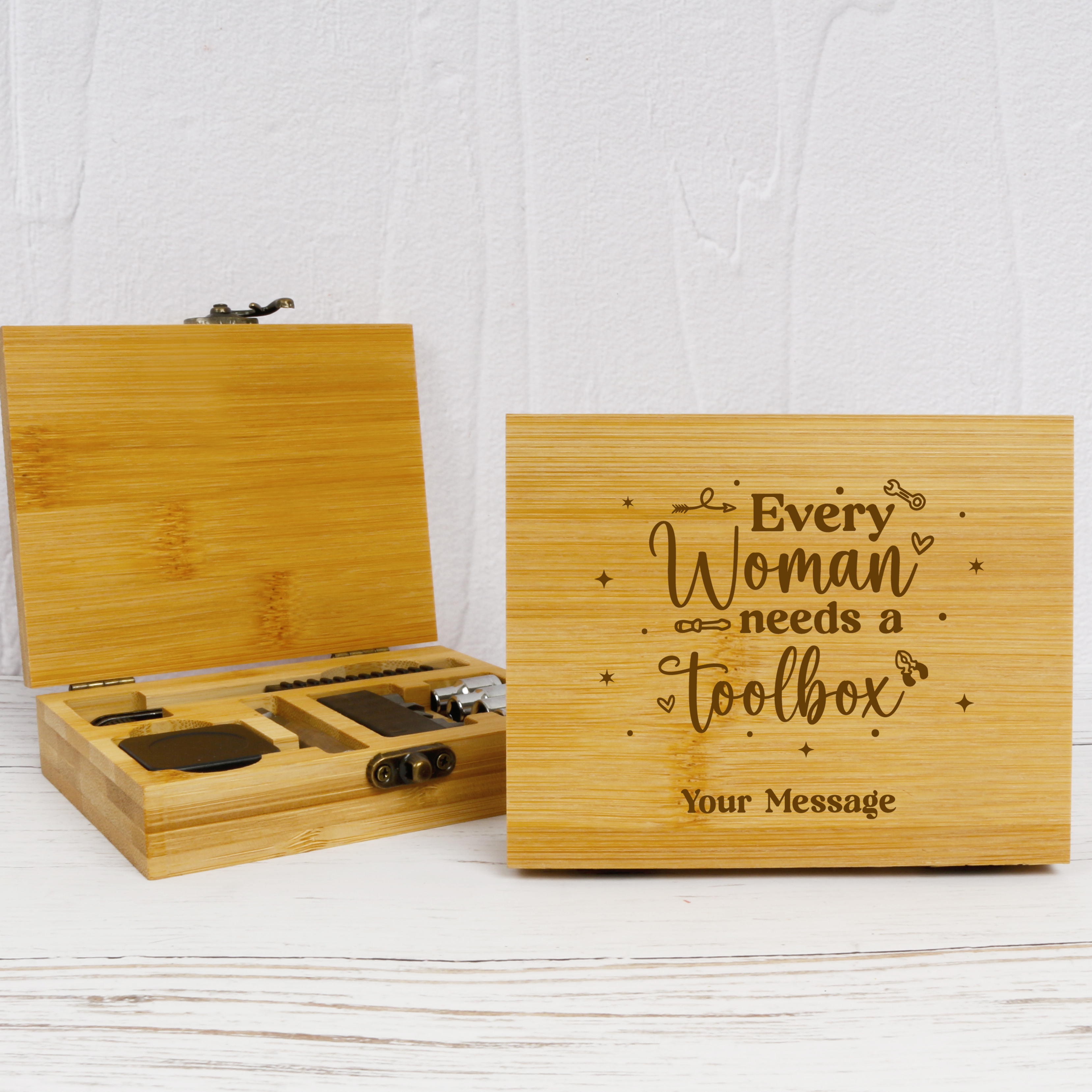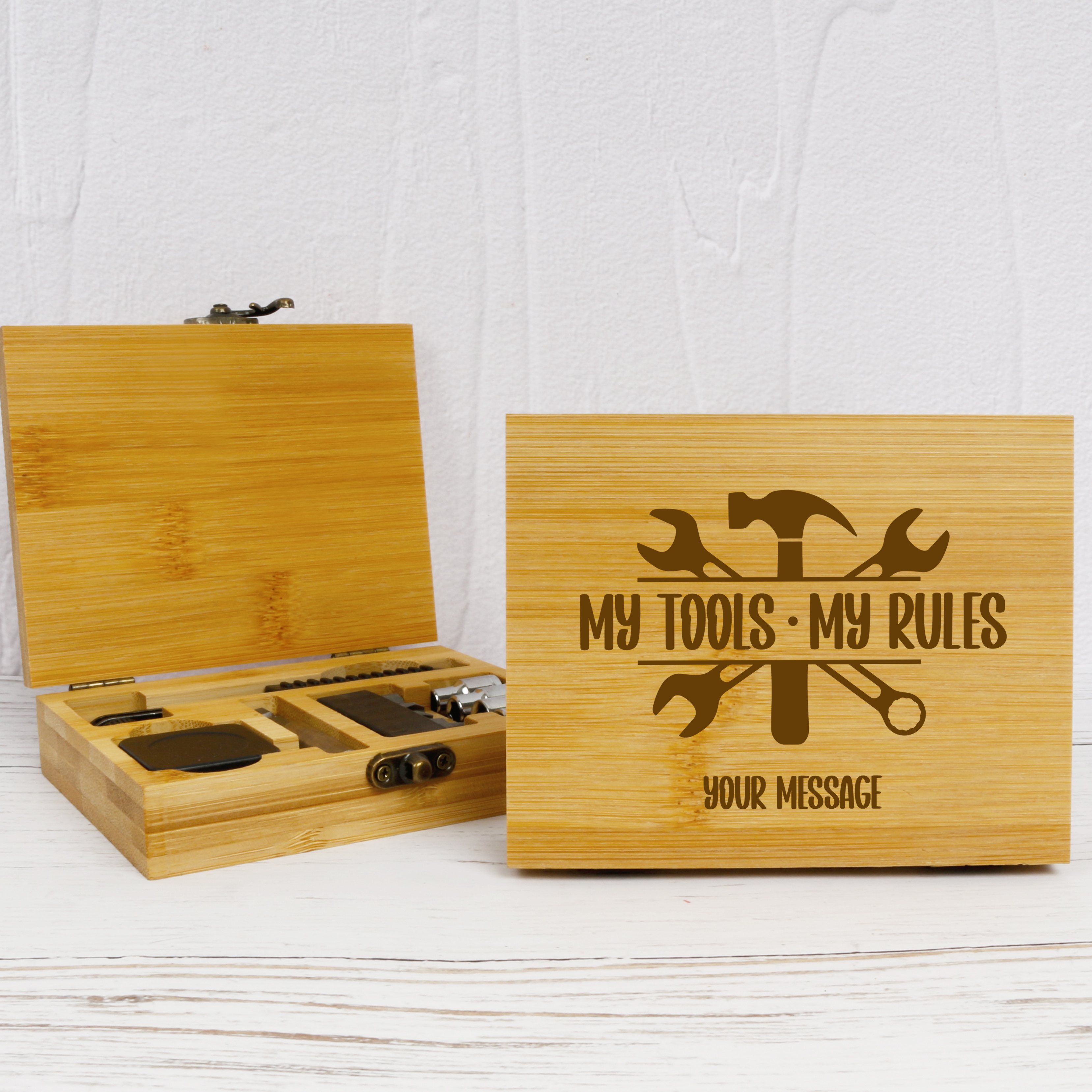 Whether it's for Christmas, Father's Day, Valentine's Day, a wedding gift, a housewarming present, or a thoughtful surprise for a handyman, this personalised bamboo tool set is the perfect choice.