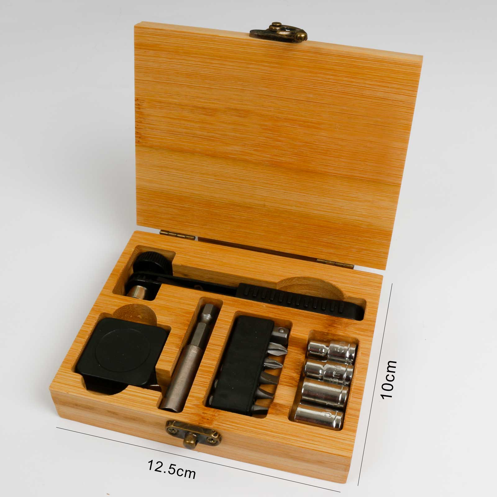 Elevate your gift-giving with our beautifully crafted 13-piece Mini Socket Tool Set, encased in a sleek rectangular bamboo box.