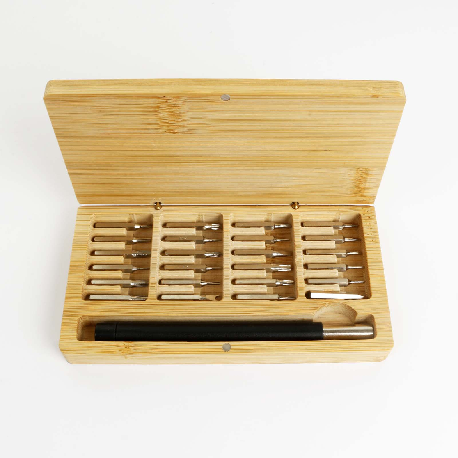 The Personalised Bamboo Box with Precision Screwdriver Tool Set is a sleek and functional 25-piece toolkit encased in a beautifully crafted bamboo box.