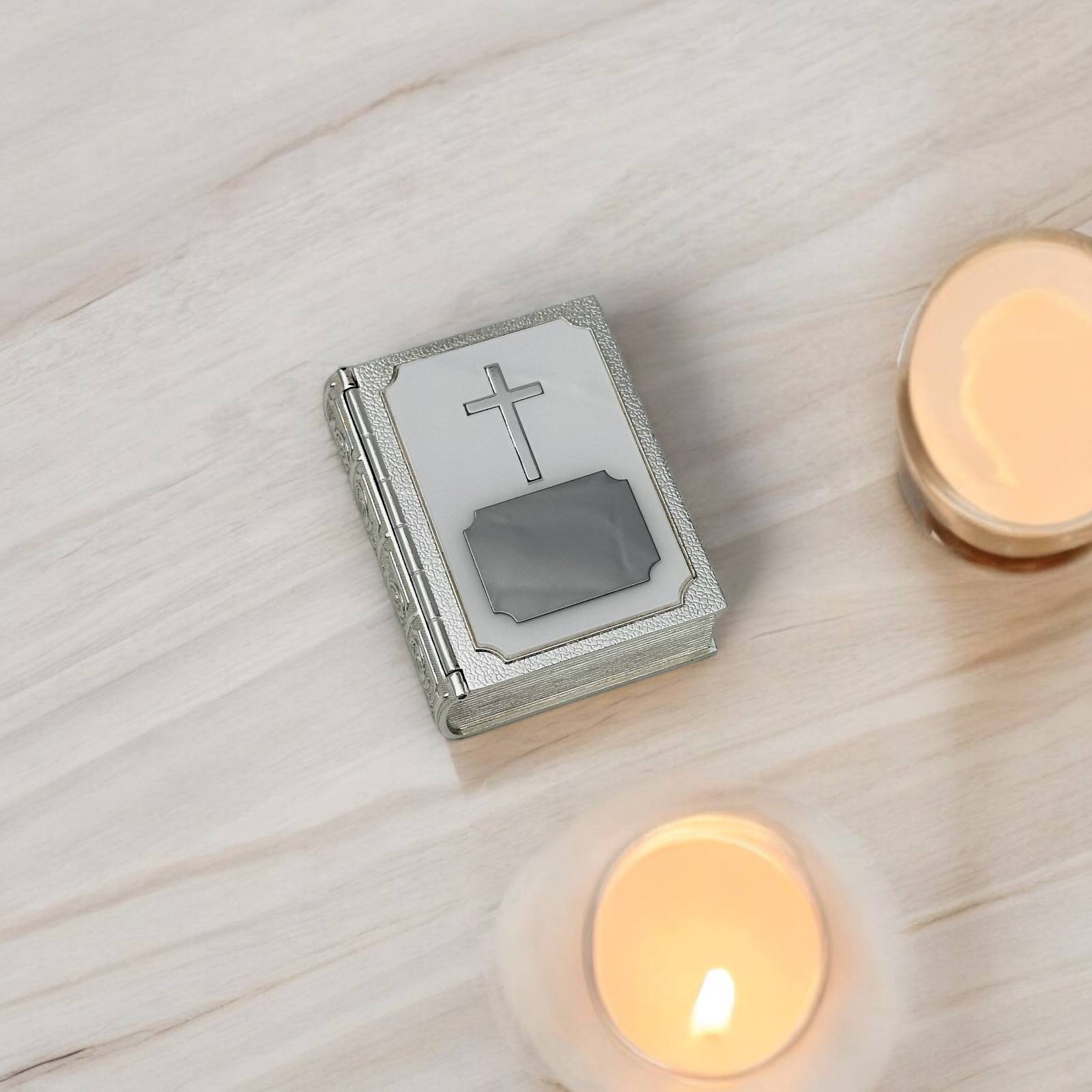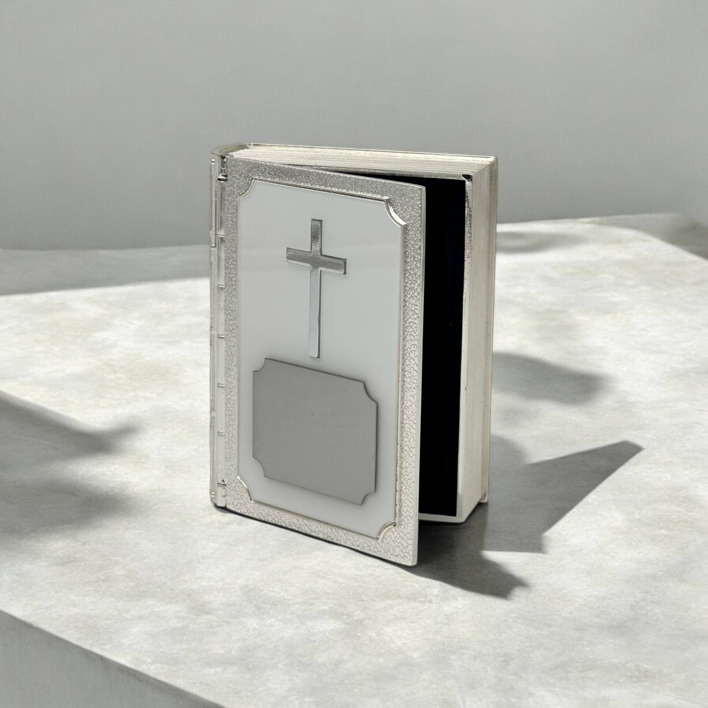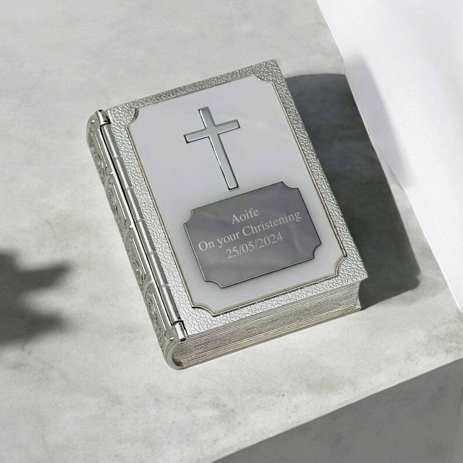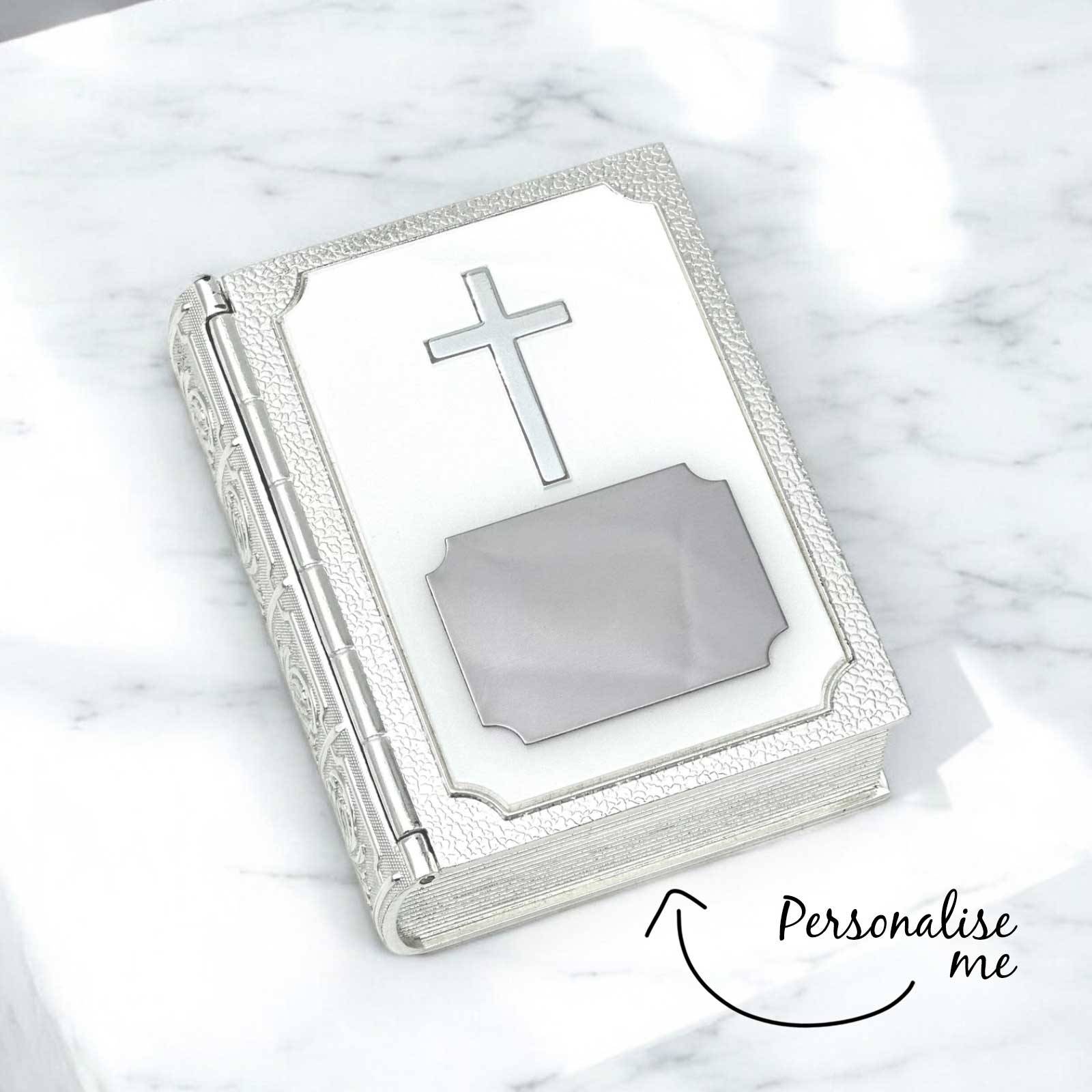 This pretty bible-shaped trinket box is perfect for a christening, communion or confirmation gift.