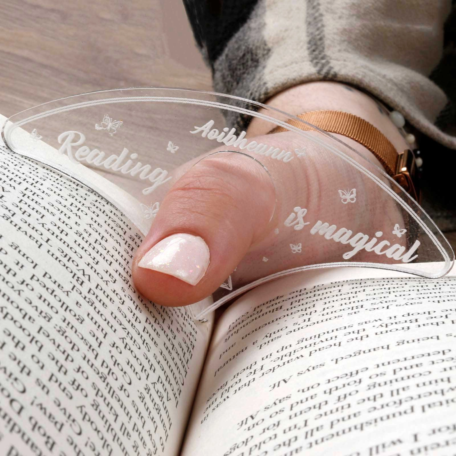 Make every reading session more enjoyable with our Personalised Acrylic Page Holder – a Book Reading Assistant Tool designed for ultimate comfort and convenience. Crafted from durable acrylic, this bookmark with a thumb grip allows you to hold pages open effortlessly, making reading more comfortable whether you’re at home, commuting, or relaxing with your favourite book.