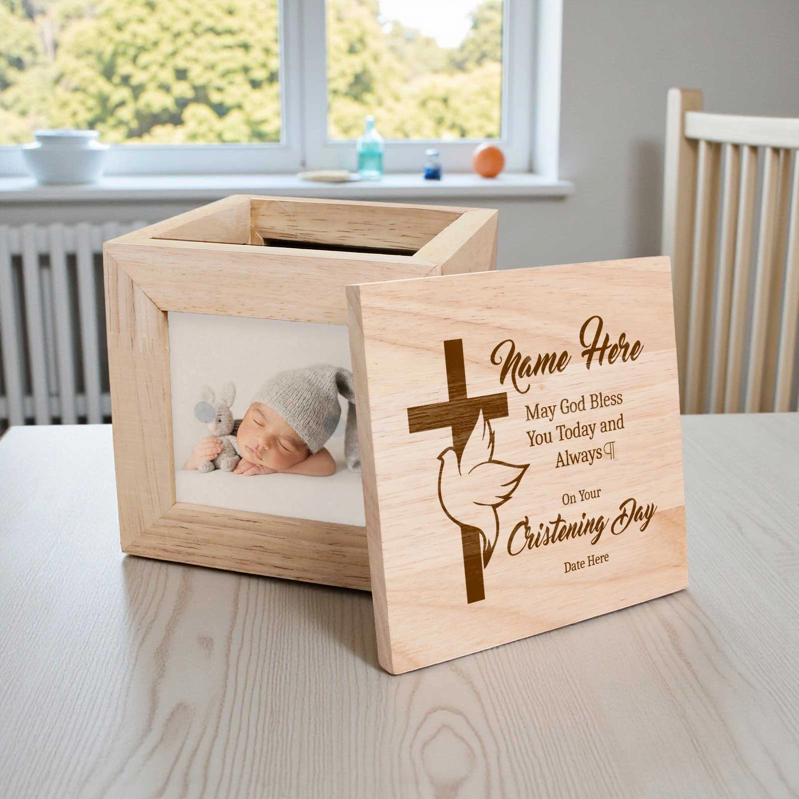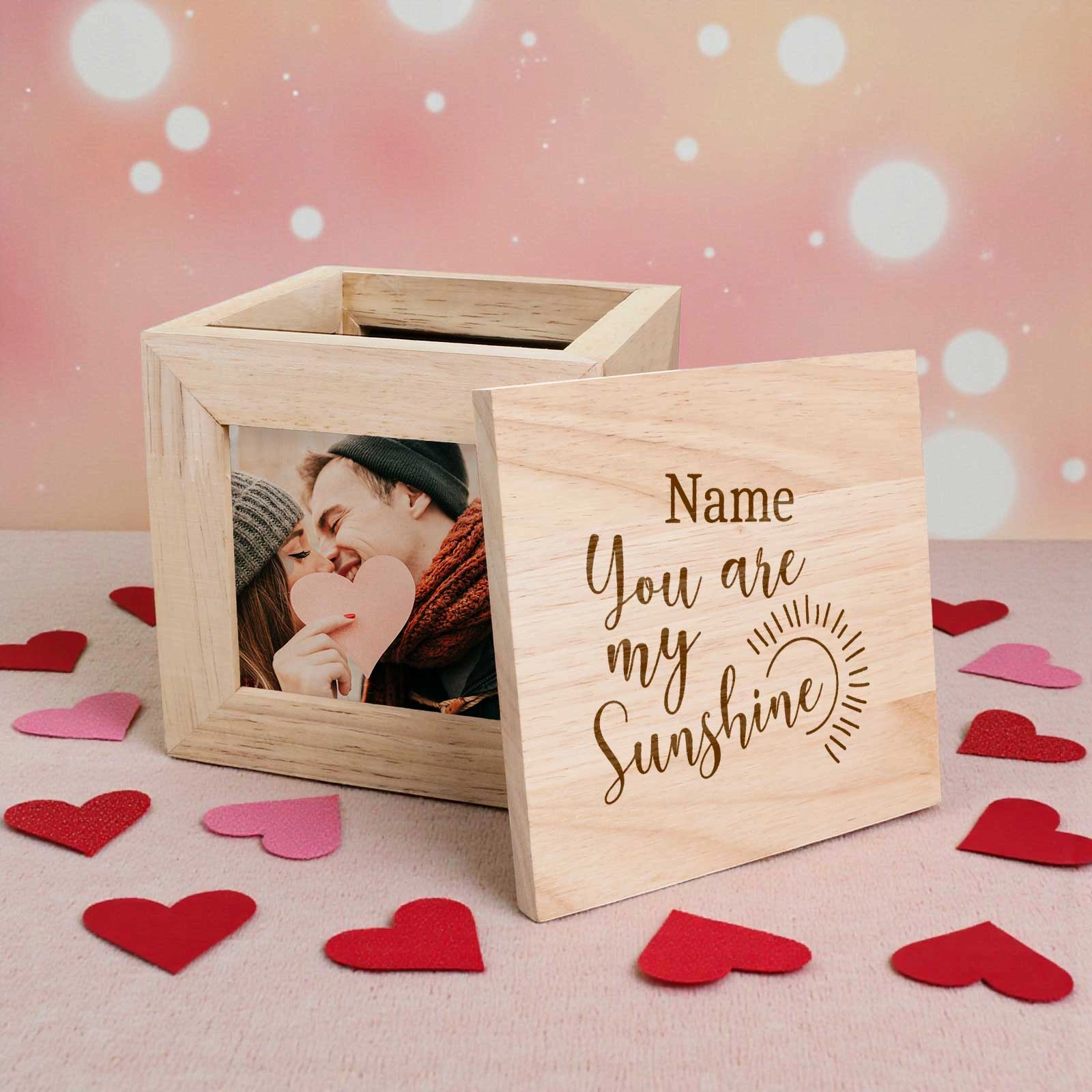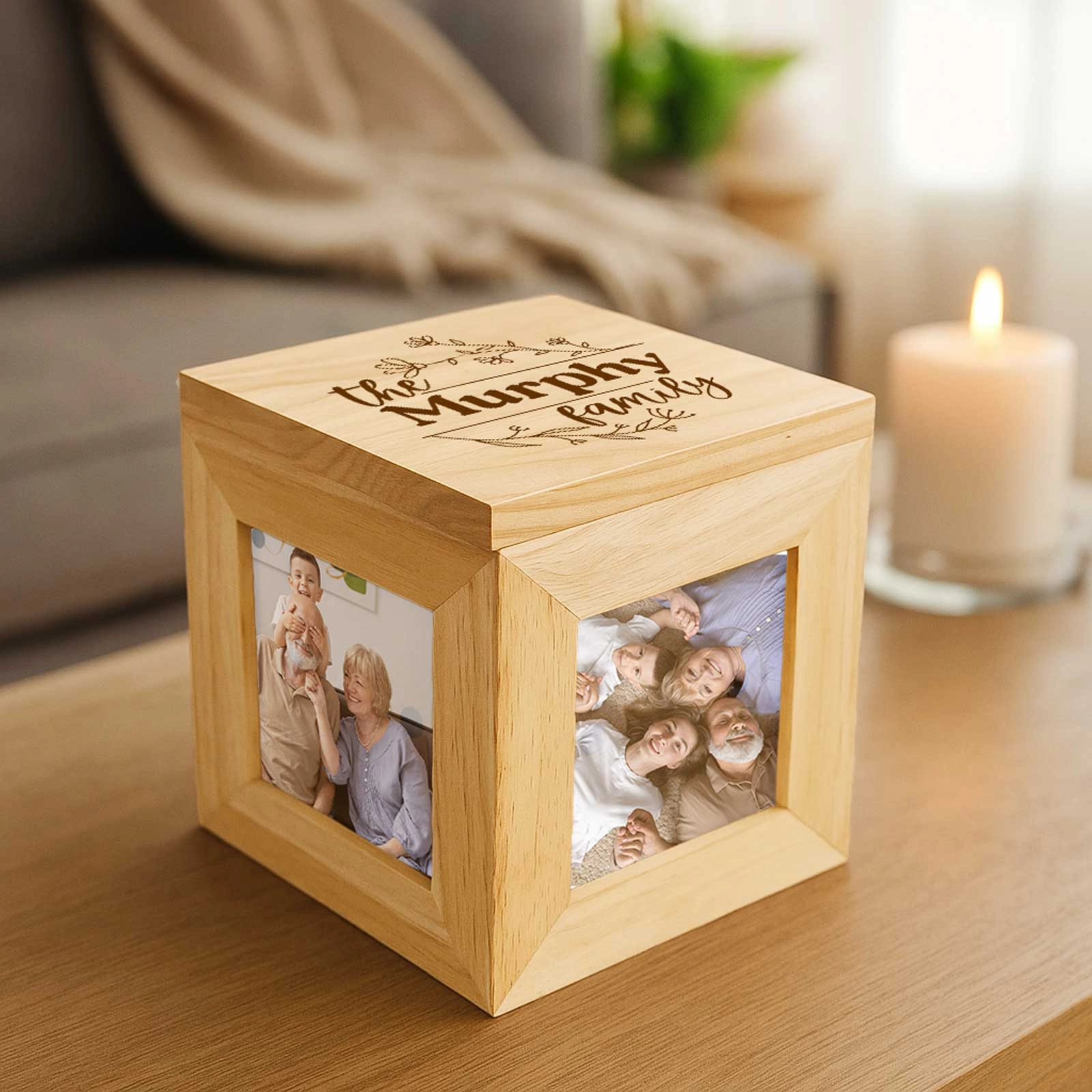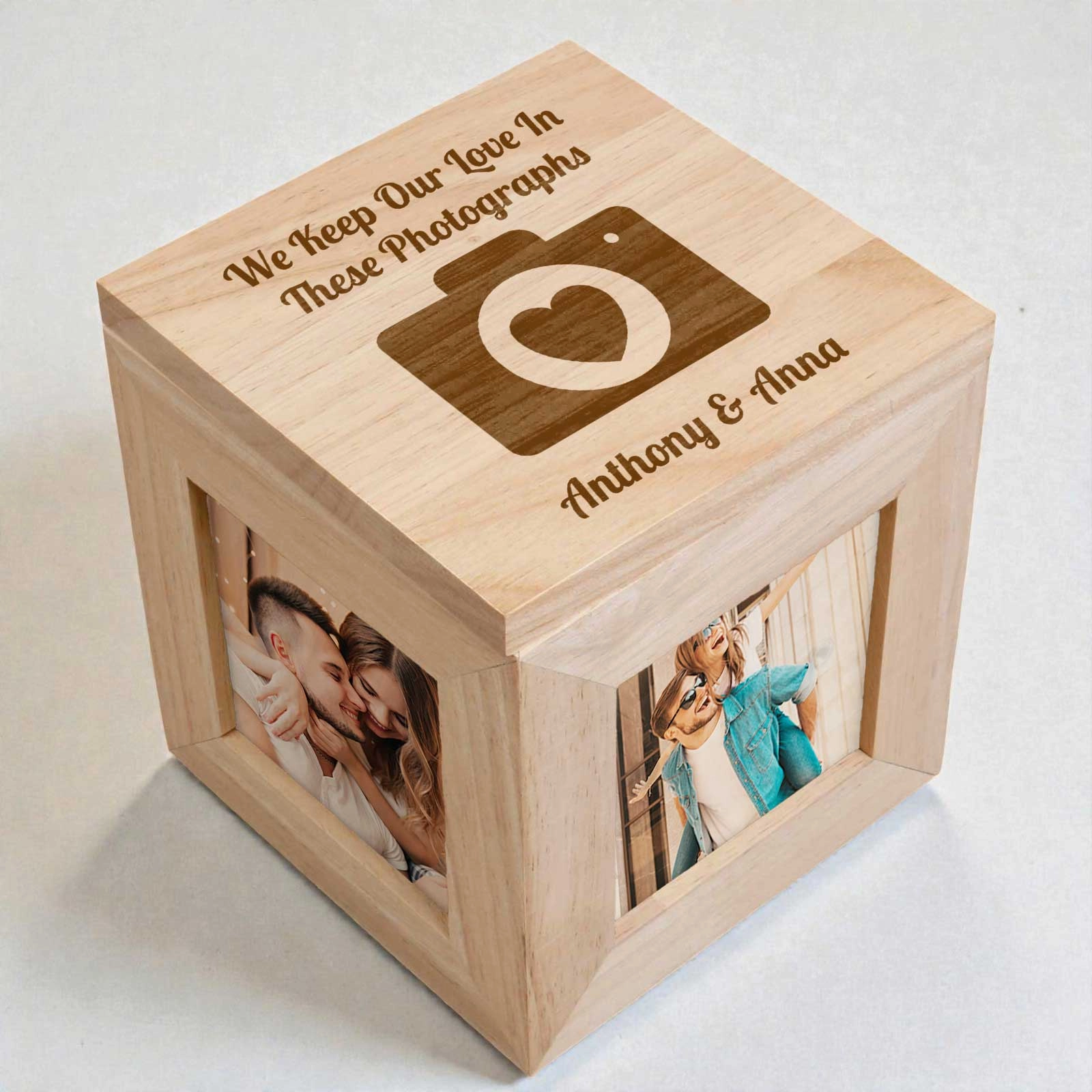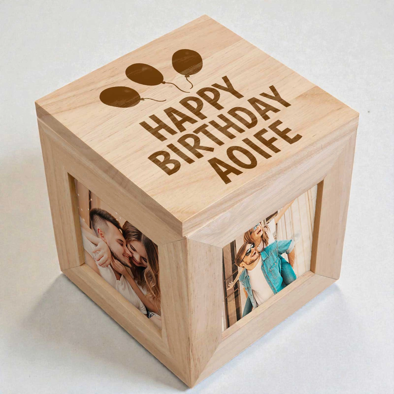 - Four photo slots – Add four cherished photos to personalise every side of the box