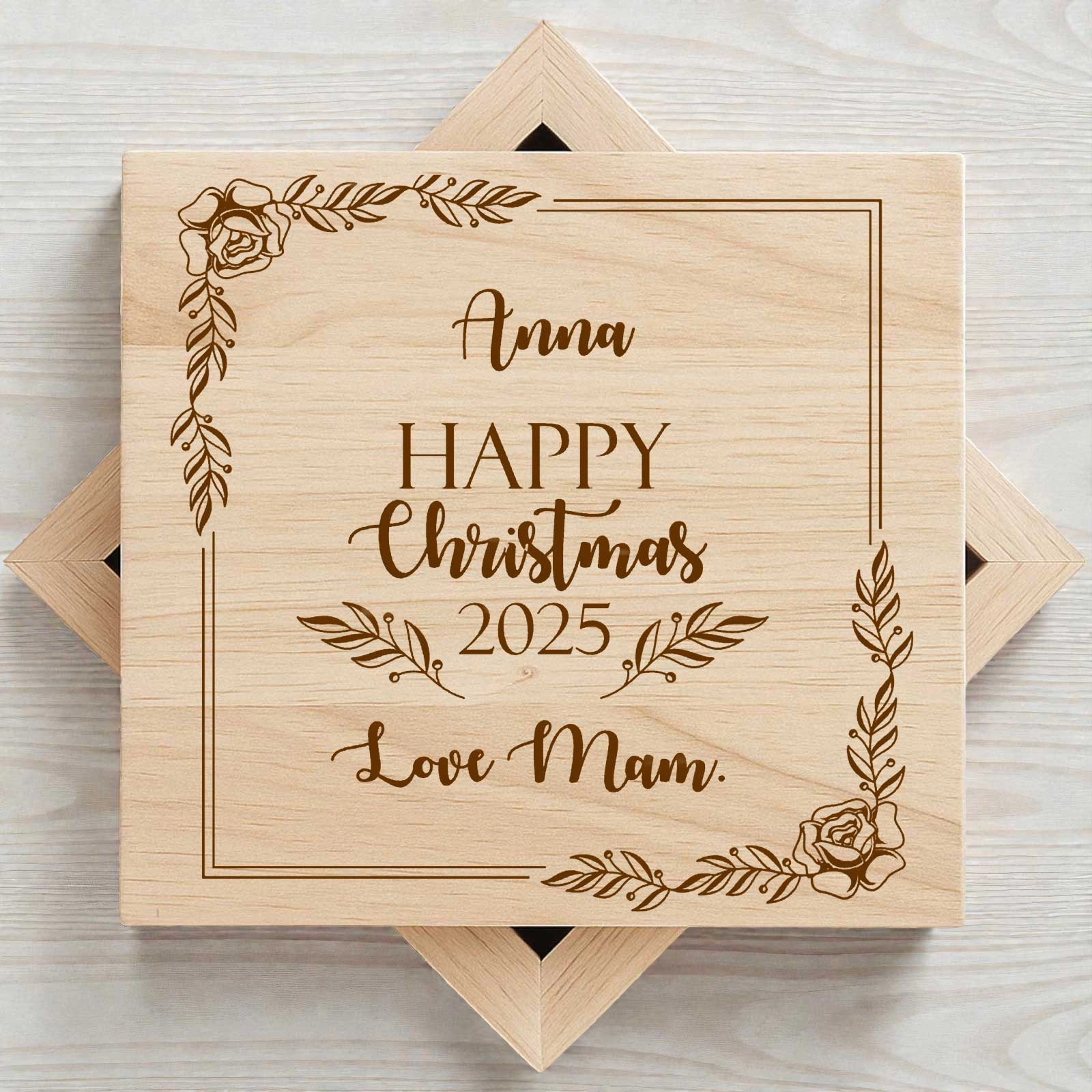 - Customisable lid engraving – Personalise the top of the box with two names or a short message, included in the price
