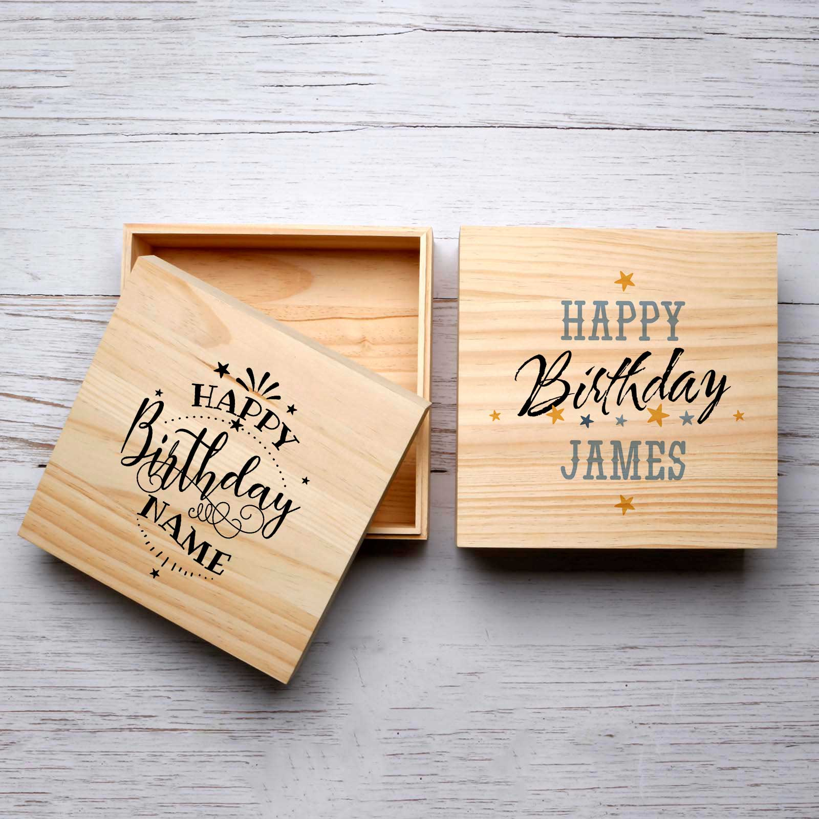 A personalised wooden keepsake box makes for an elegant and thoughtful birthday gift.