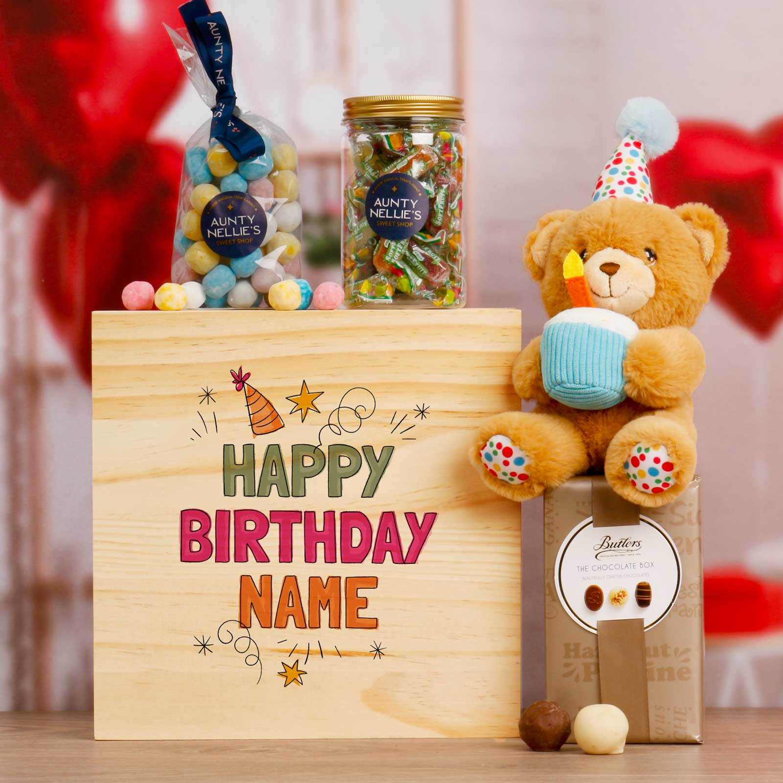 Happy Birthday Teddy Bear: This charming teddy bear, adorned with a festive "Happy Birthday" message, adds a touch of warmth and celebration.