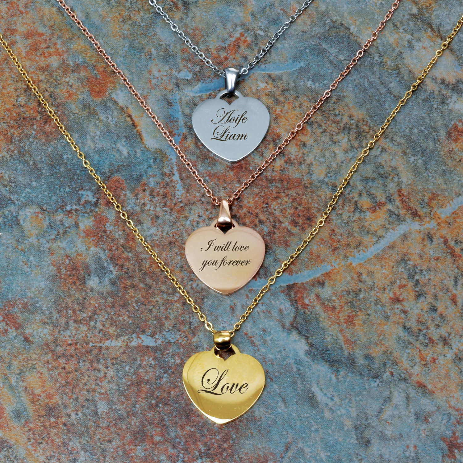The Personalised Heart Pendant hanging from a Box chain, makes the perfect gift for Valentine’s Day, an anniversary – it’s a wonderful Mother’s Day gift, and a Christmas gift, as well!