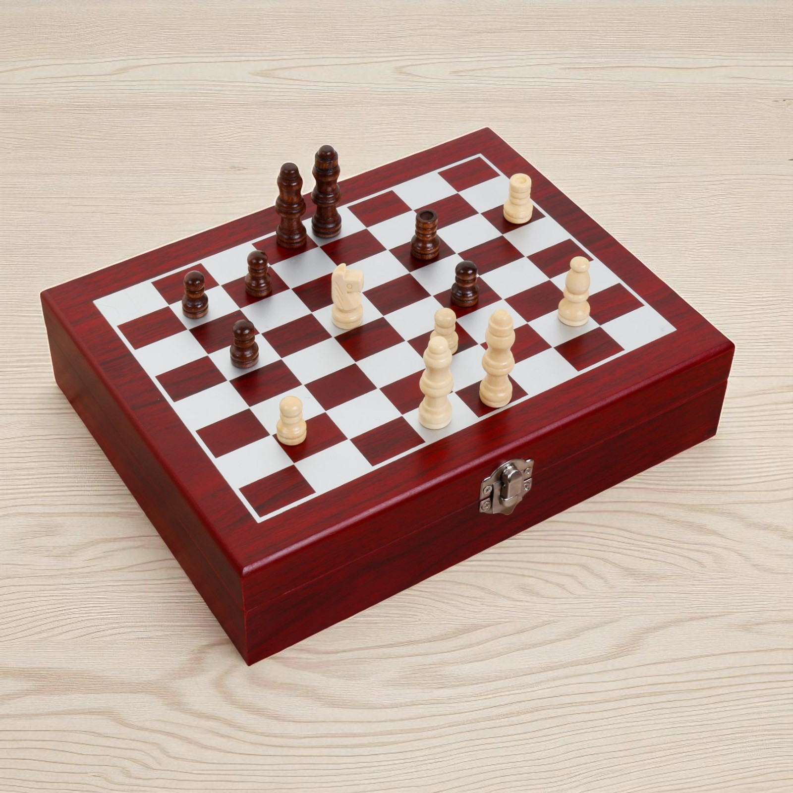 • Includes four shot cups, a funnel, and a complete chess set.