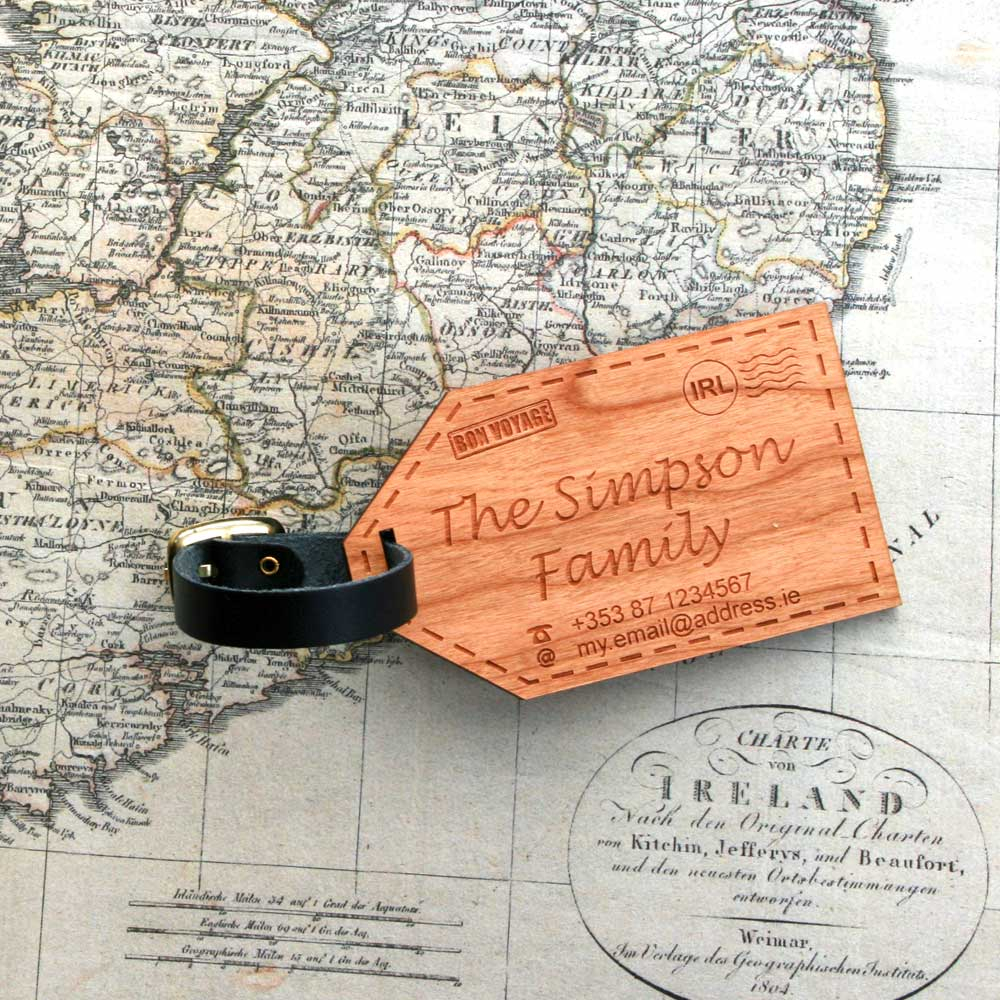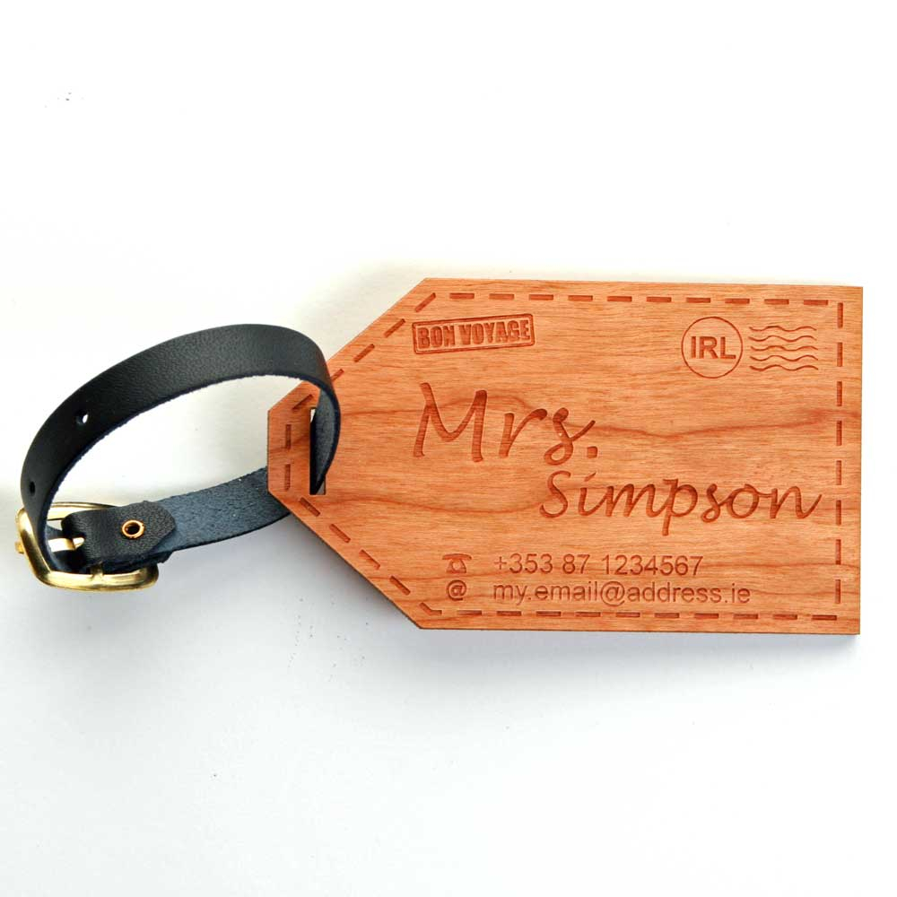 It's Bon Voyage in style with these wooden personalised baggage tags.