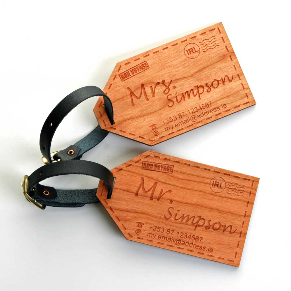 It's Bon Voyage in style with these wooden personalised baggage tags.
