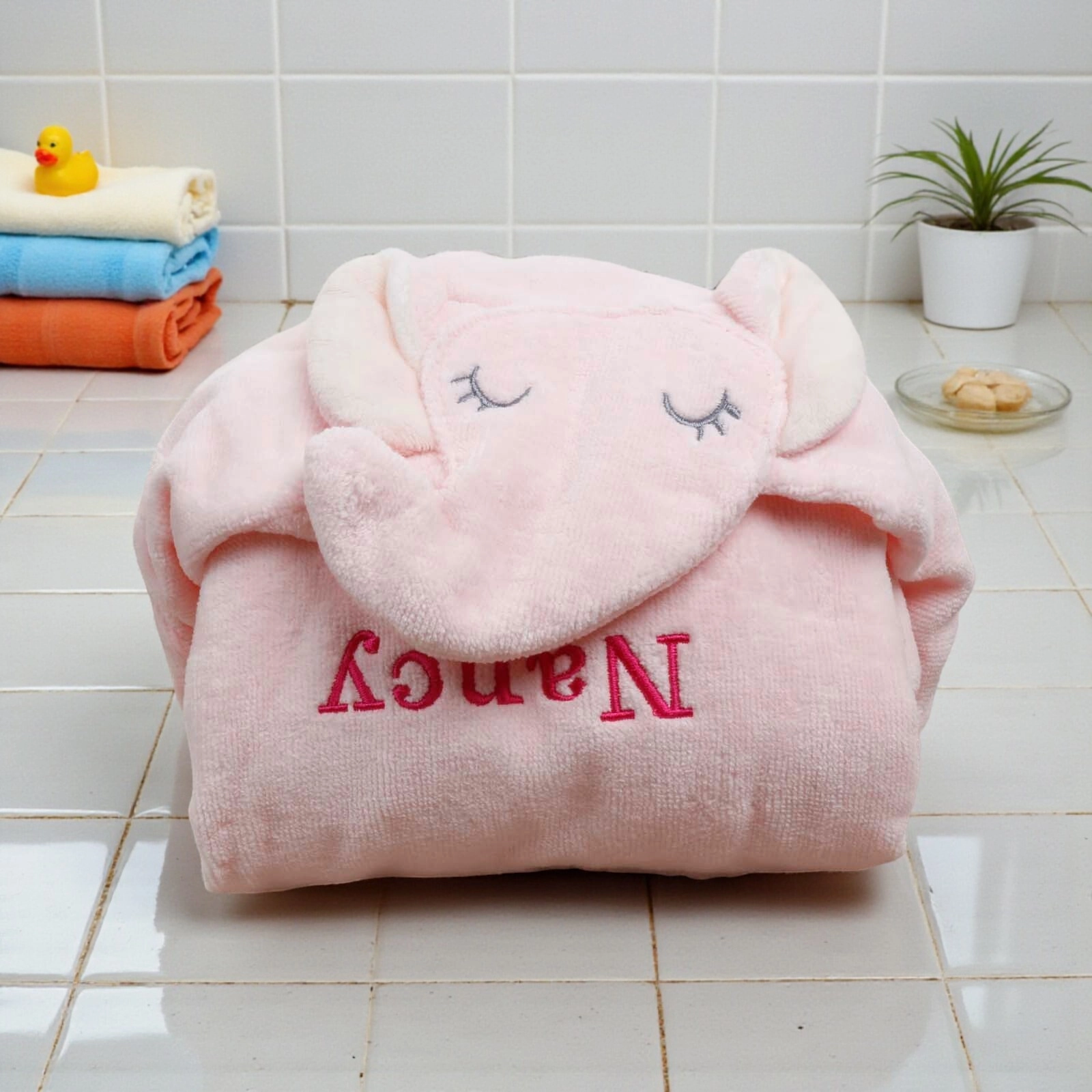 Personalised Pink Elephant Baby Bath Wrap