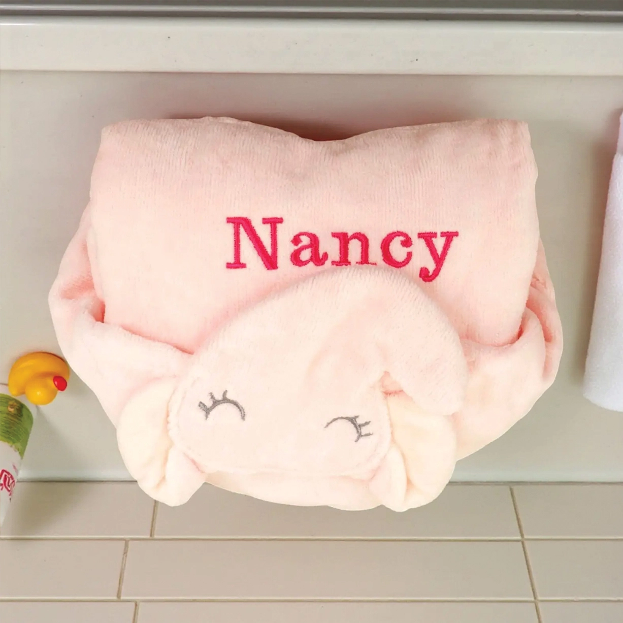 An adorable pink elephant baby wrap, 3D Dino detail on the hood, embroidered eyes.