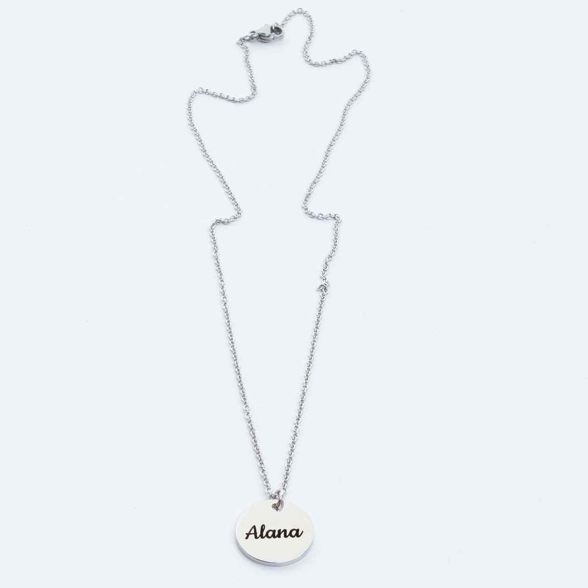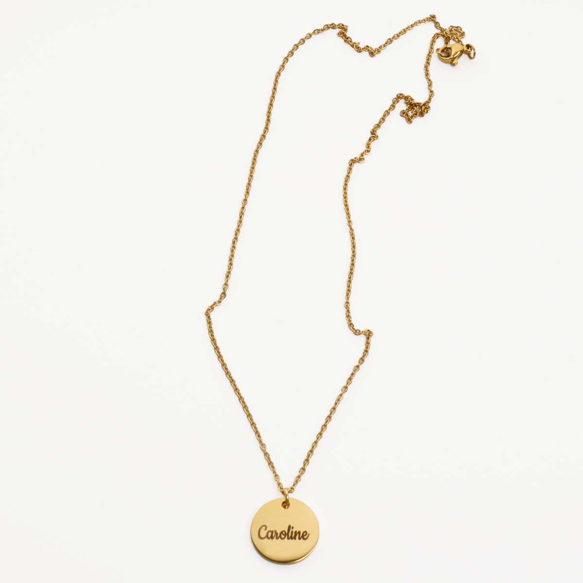 The Personalised Round Pendant hanging from a Box chain, makes the perfect accessory for any occasion.