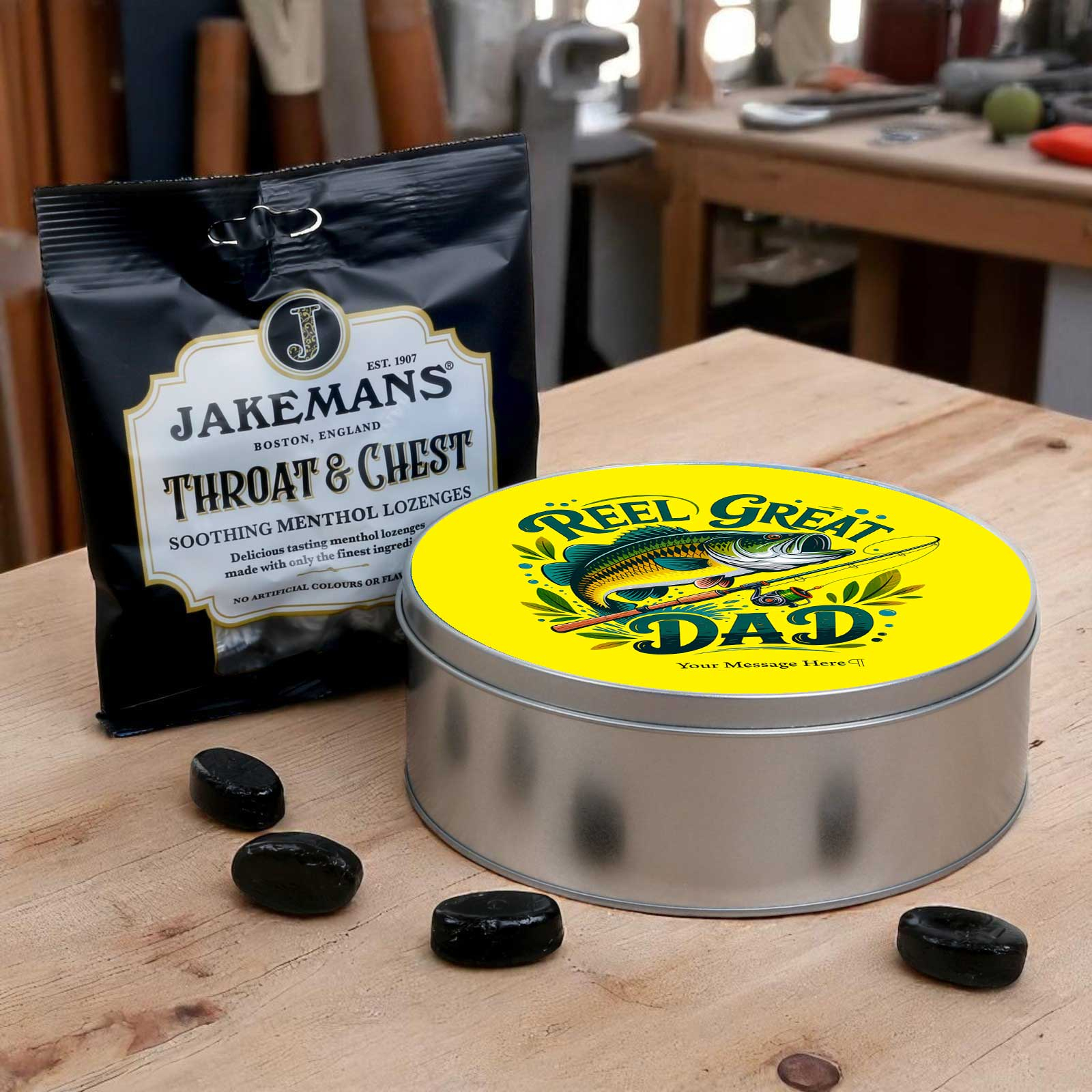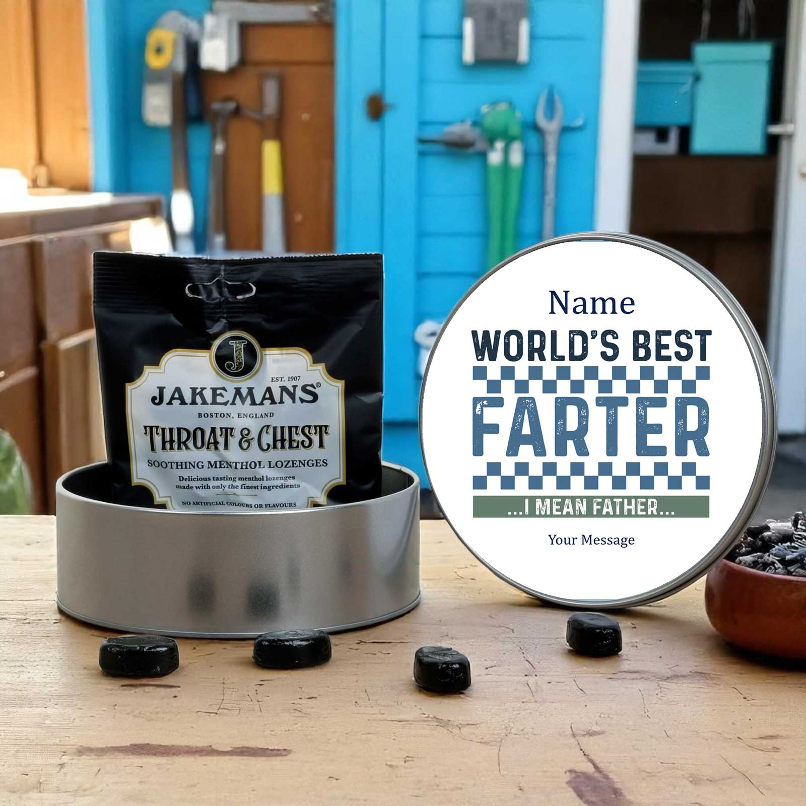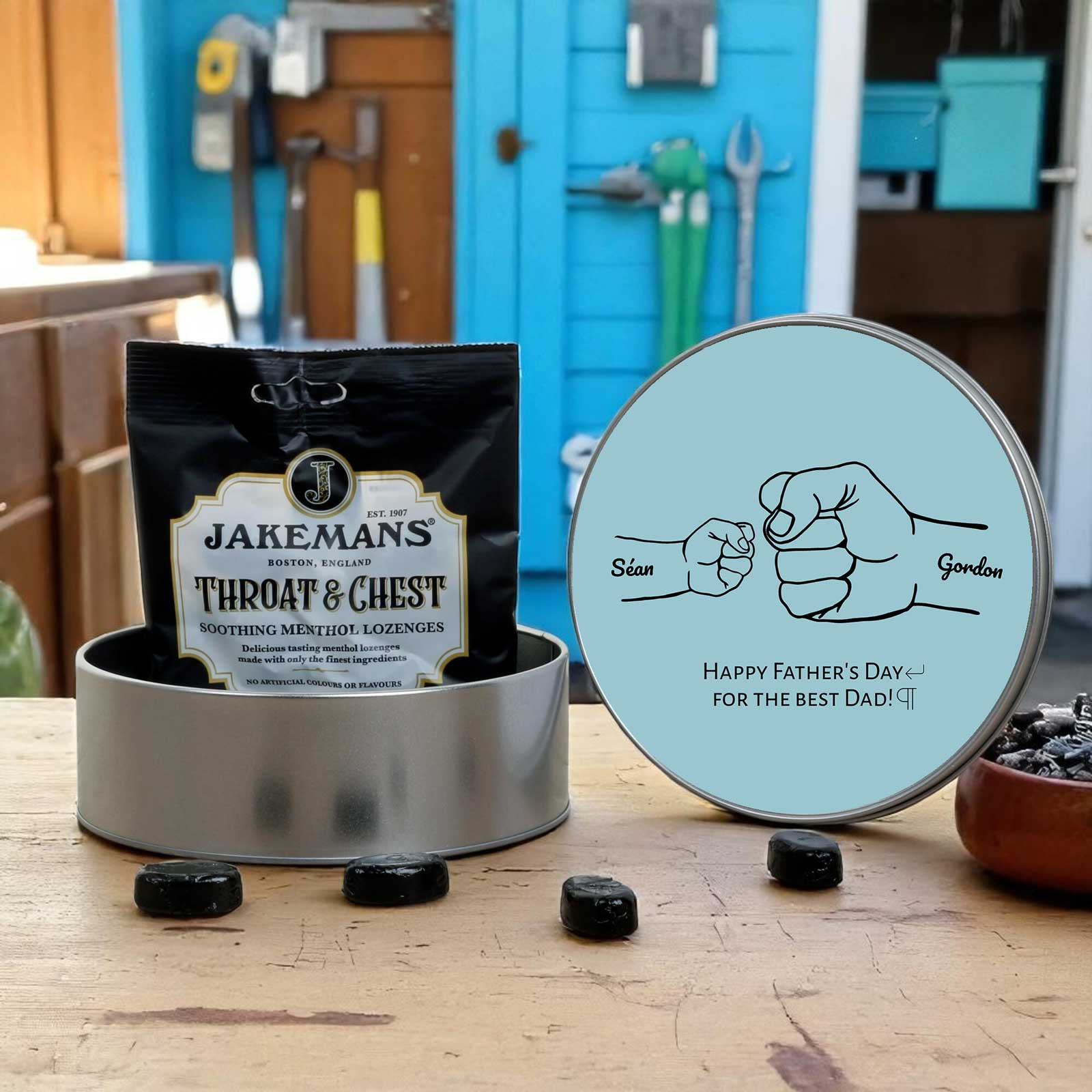Looking for a thoughtful and practical gift? This personalised round storage tin is packed with charm - and Jakemans Menthol Lozenges for that soothing sweet fix!