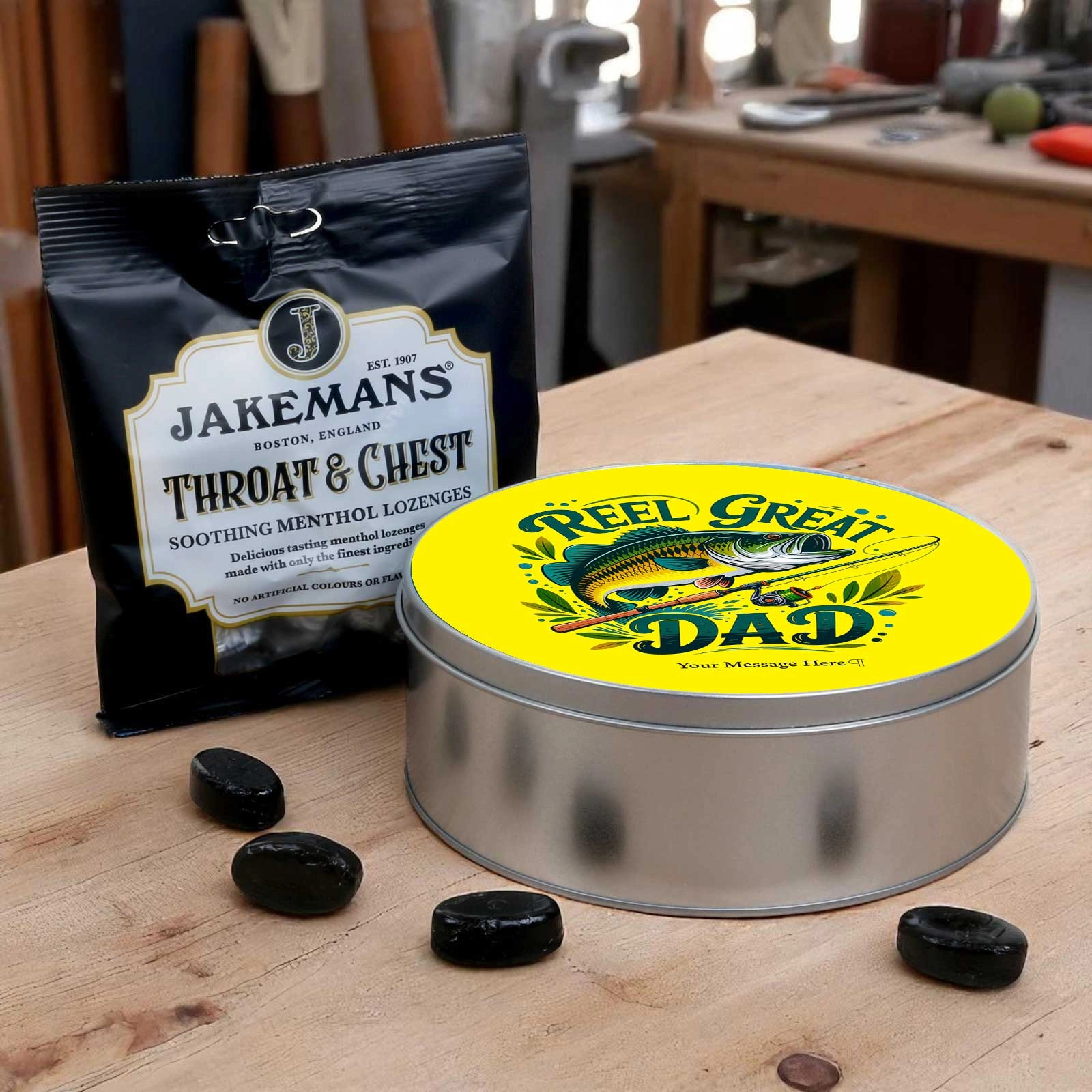 Looking for a thoughtful and practical gift? This personalised round storage tin is packed with charm - and Jakemans Menthol Lozenges for that soothing sweet fix!