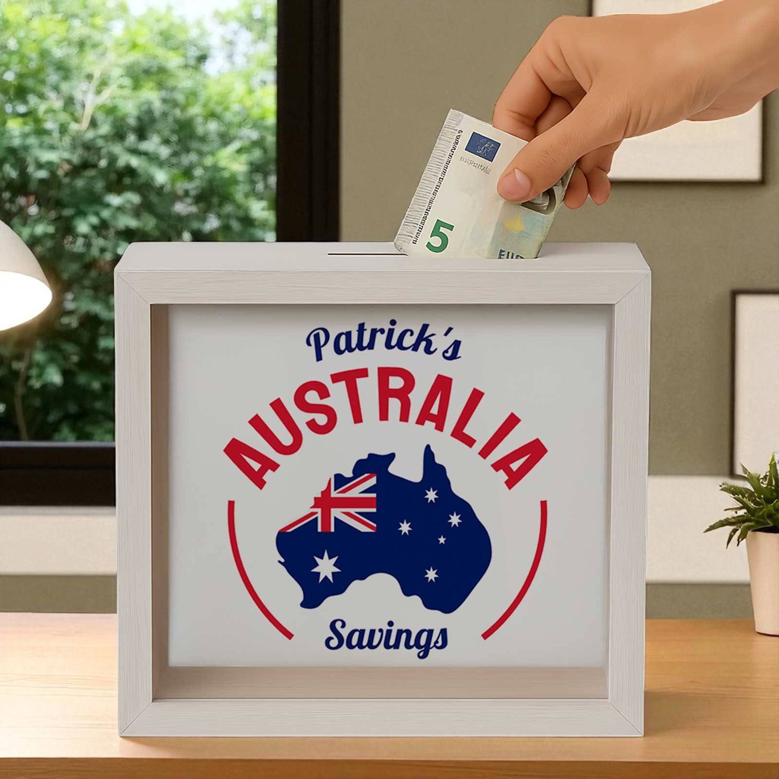 This Personalised Wooden Money Saving Box makes a thoughtful and practical gift for birthdays, anniversaries, weddings, housewarmings, Christmas, retirement, honeymoon, Australia fund, America fund, new car or simply as an encouraging gesture to anyone starting a new savings journey.