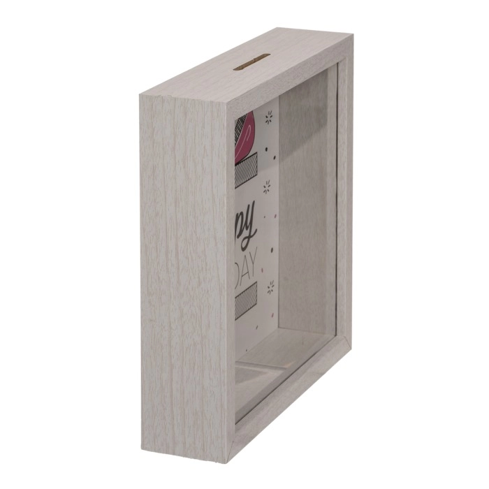 • Interactive shadow box design with a clear glass front lets you watch your savings grow and provides a visual goal that keeps motivation high.