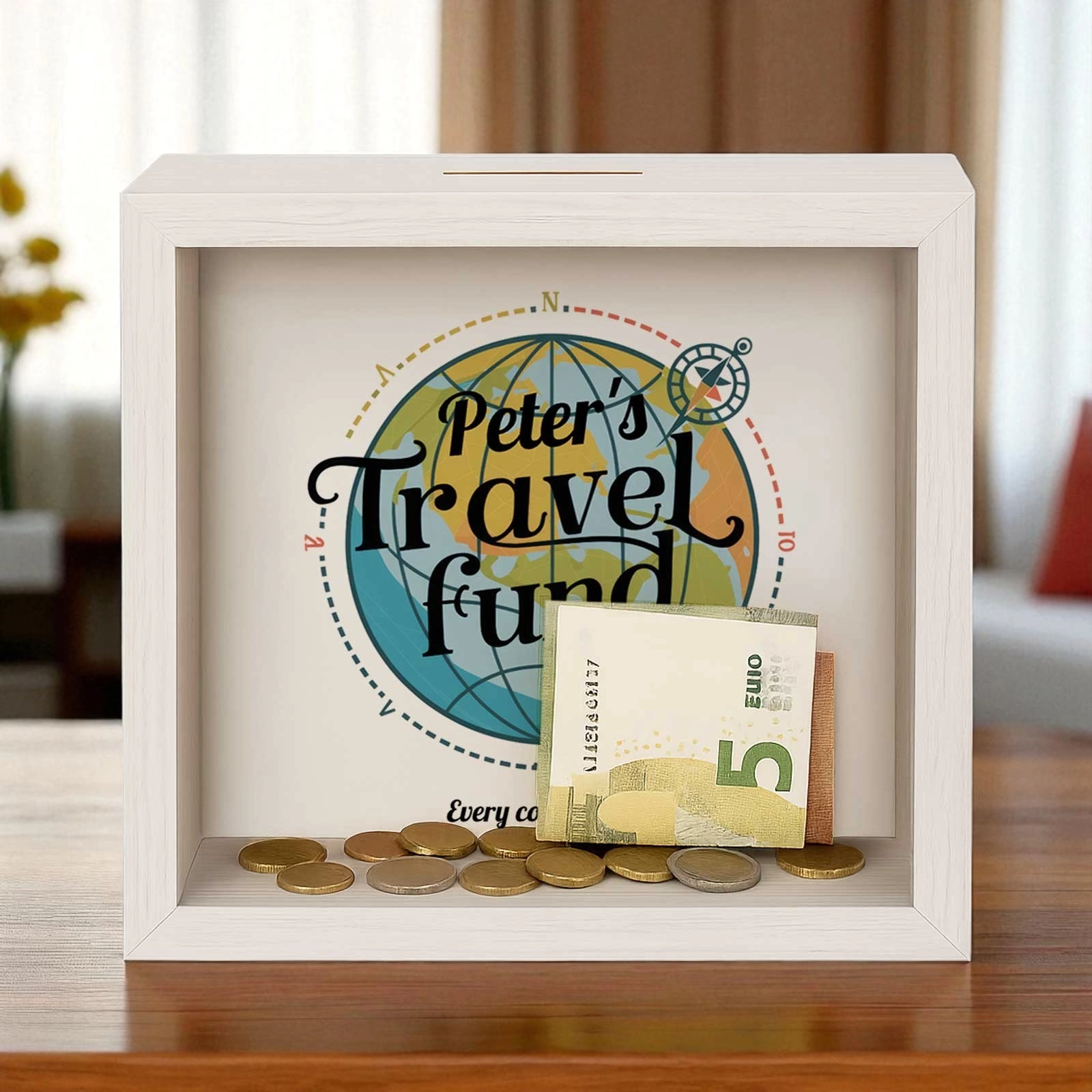 Personalised Savings Fund Box – the perfect gift to inspire saving in style and add a personal touch to any space.