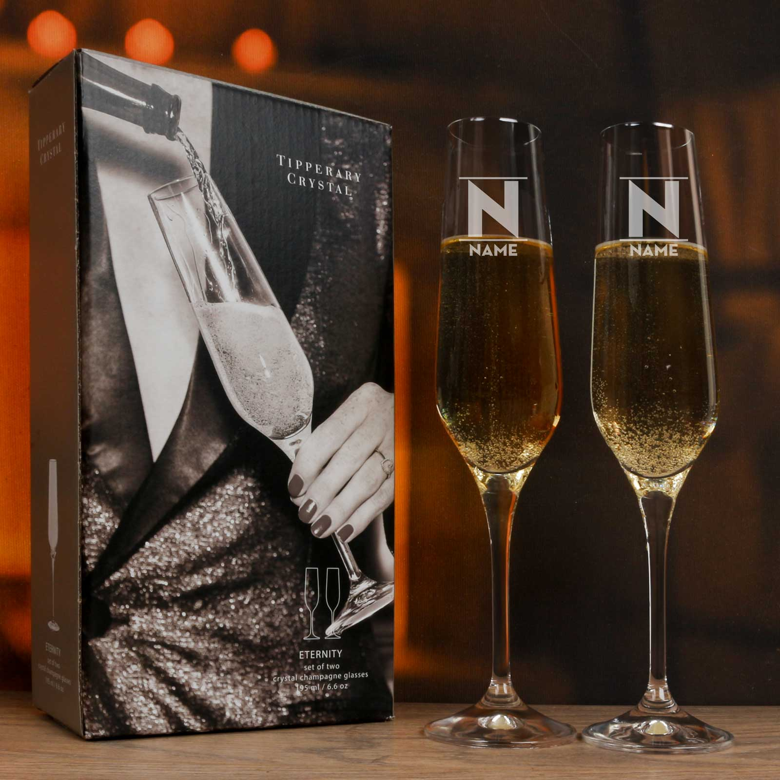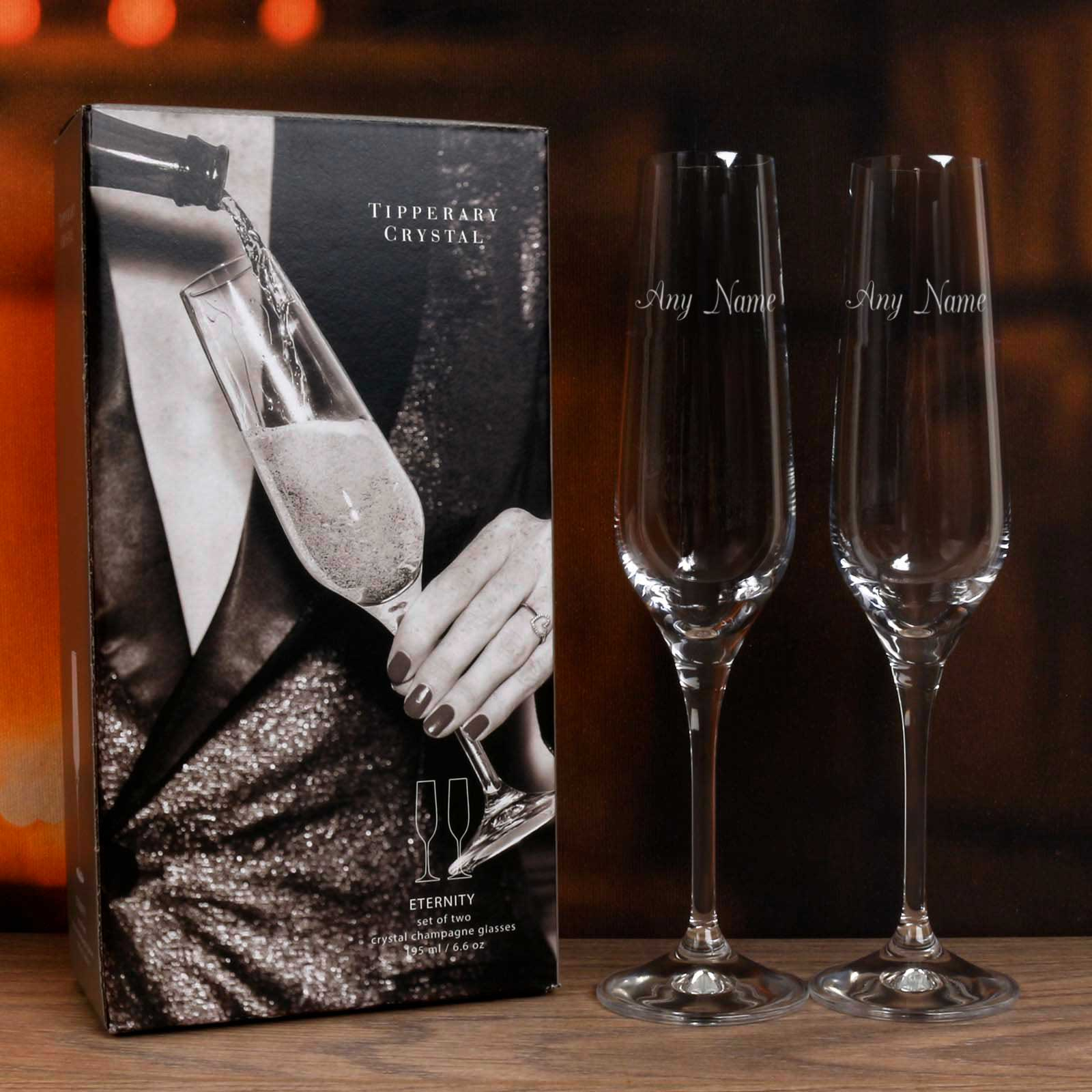 Gift the perfect blend of luxury and personalisation with our Tipperary Crystal Eternity Champagne Glasses, ideal for any occasion.