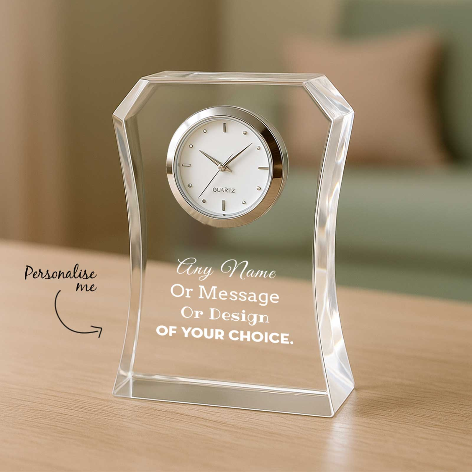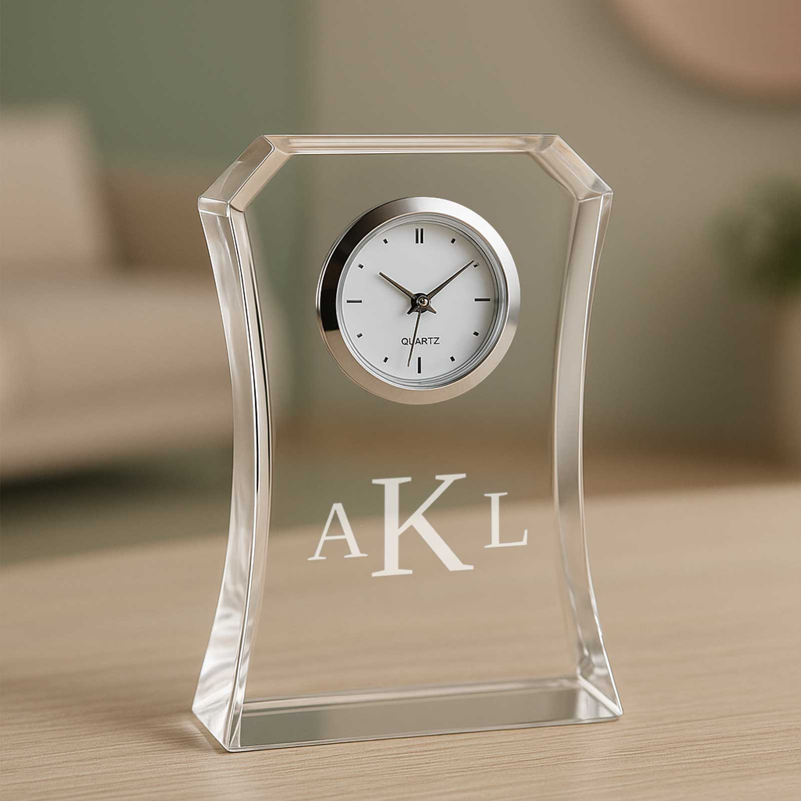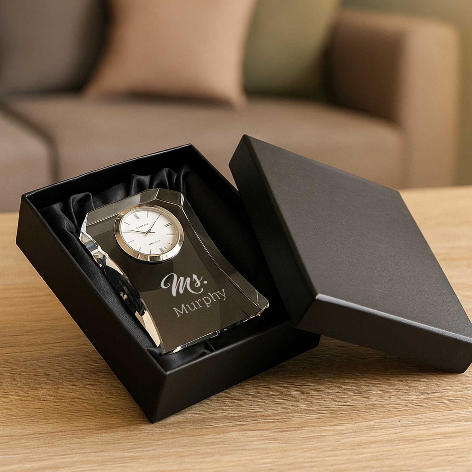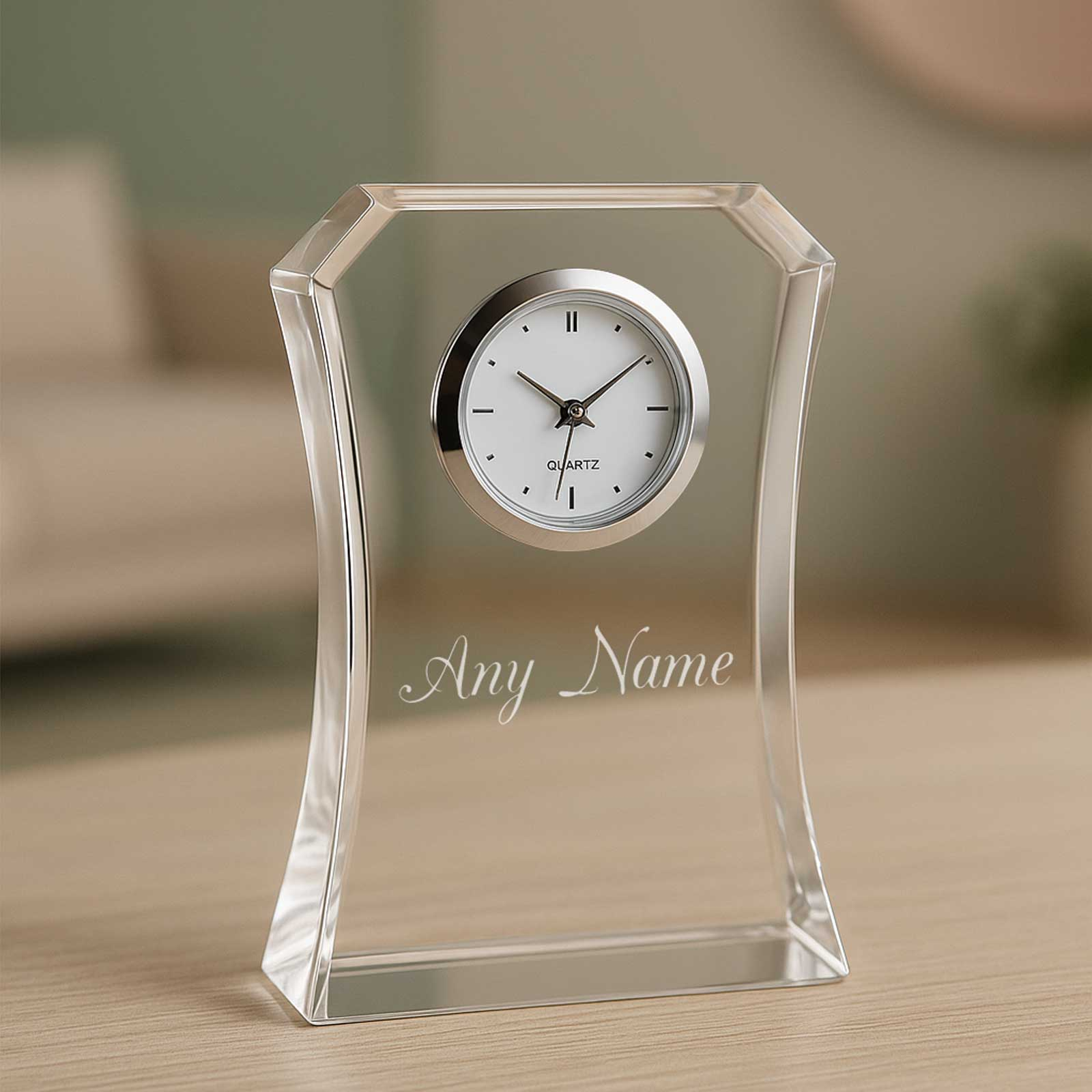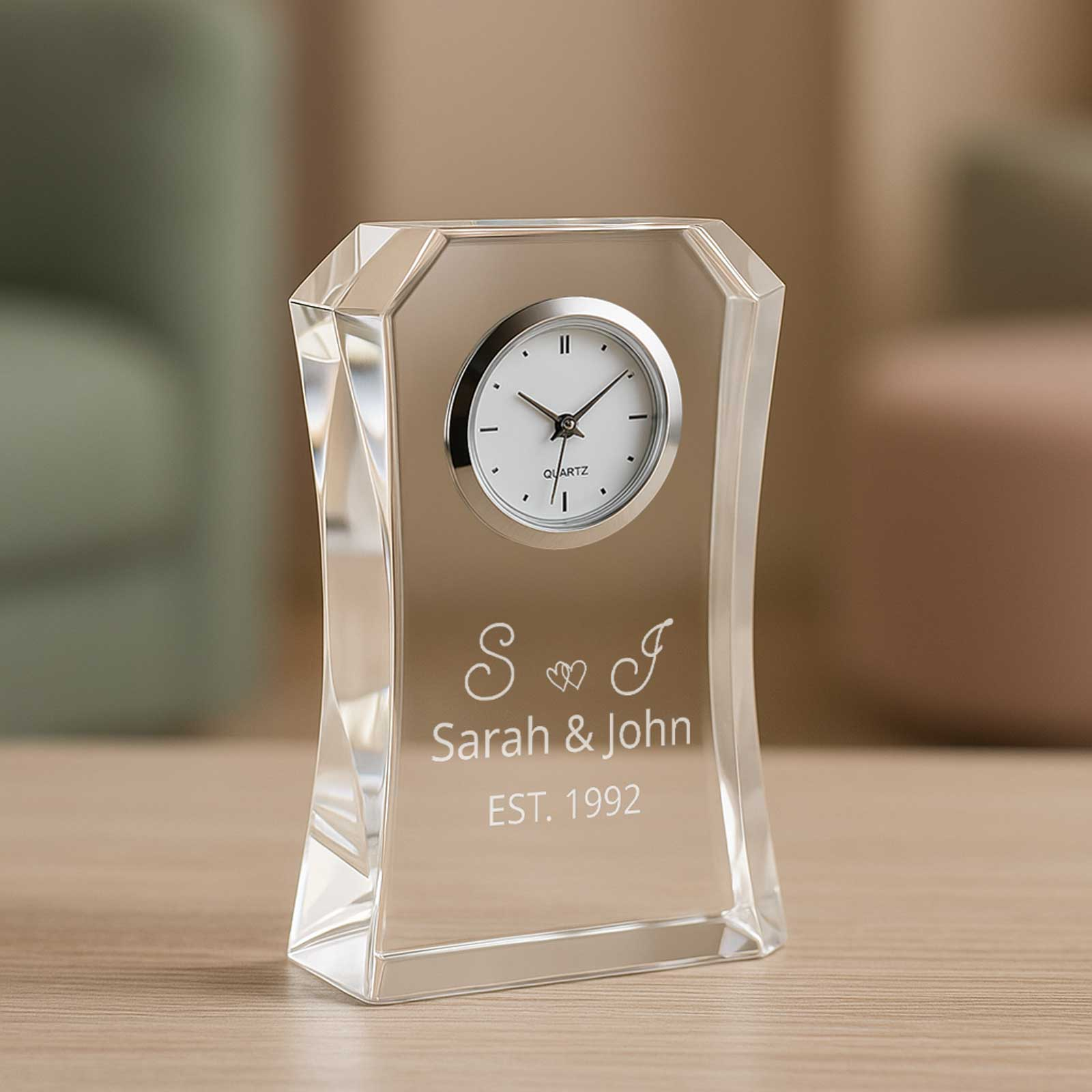 Personalised Small Optic Crystal Clock – Elegant & Timeless Gift