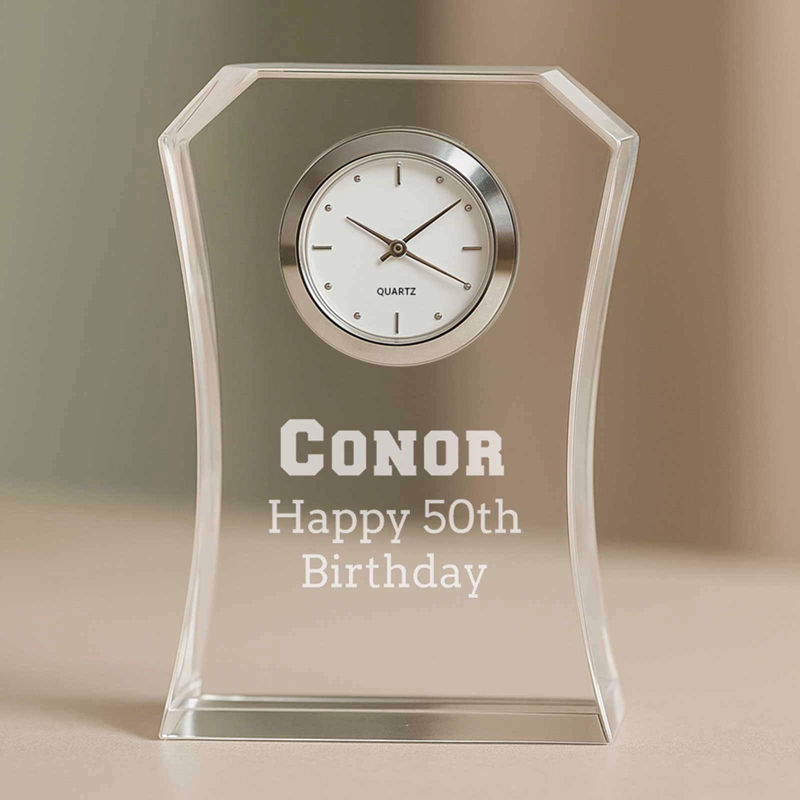 Personalised Small Optic Crystal Clock – Elegant & Timeless Gift