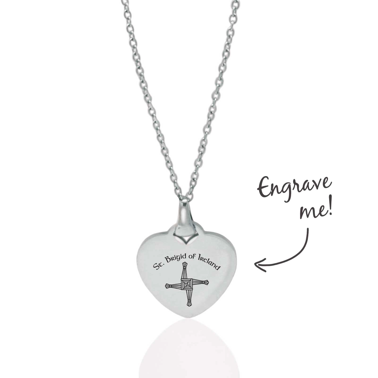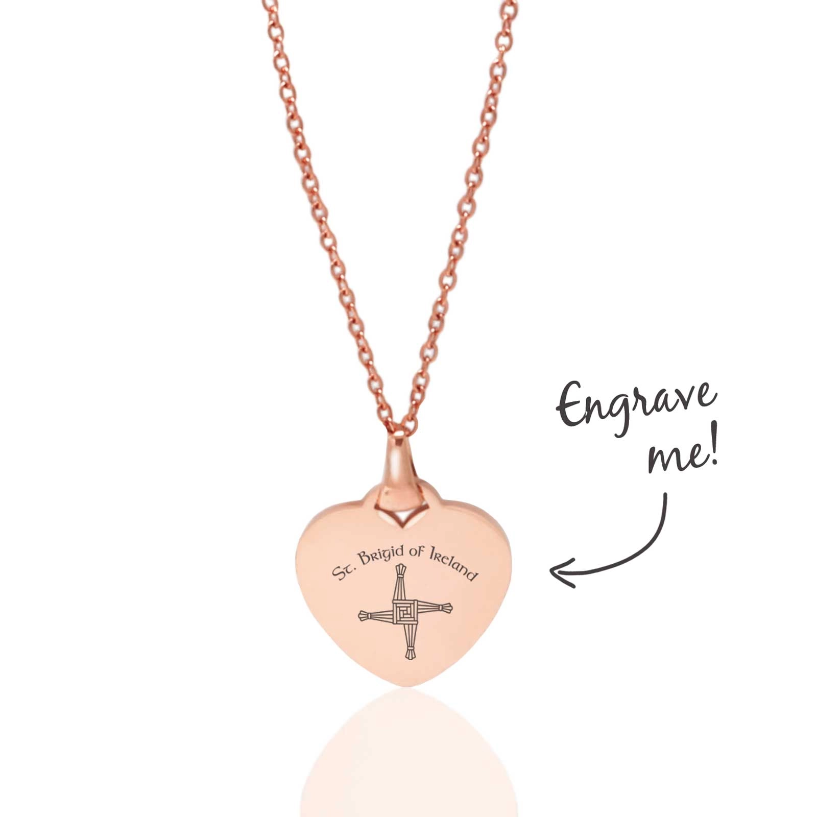 Celebrate Irish heritage and meaningful gifting with this beautifully crafted Personalised St Brigid Heart Necklace. Featuring a delicate St Brigid’s Cross engraved on the front, this elegant heart-shaped pendant is a timeless symbol of protection, faith, and home.