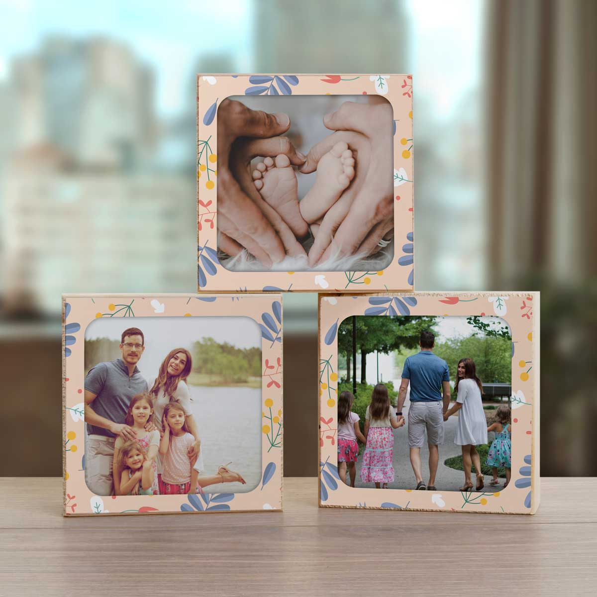Personalised Wooden Photo Blocks - Floral