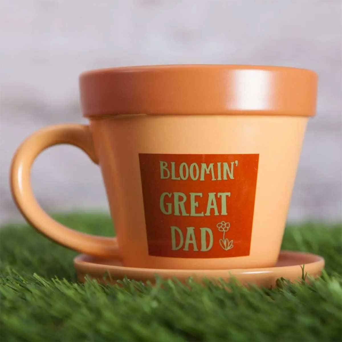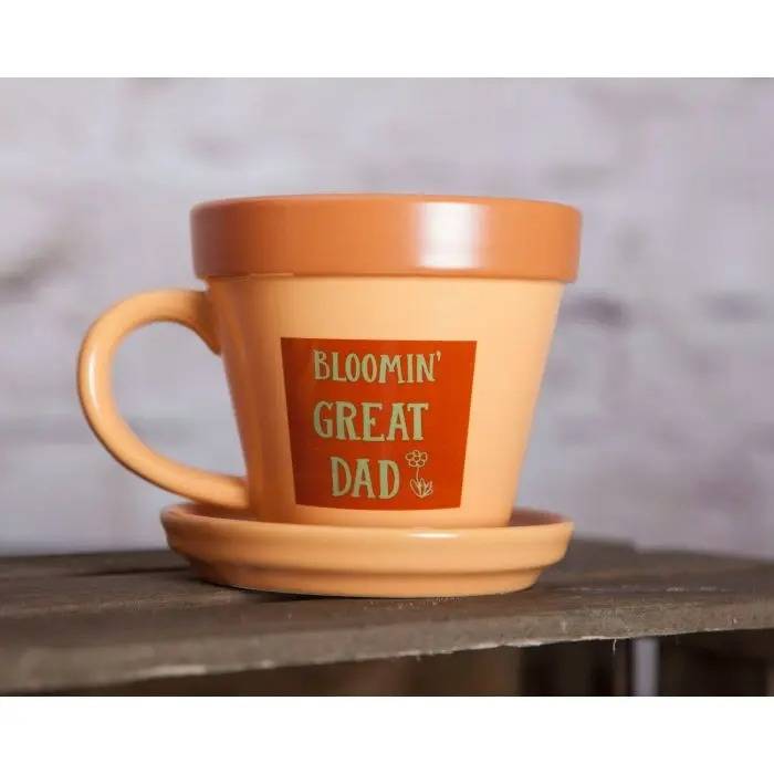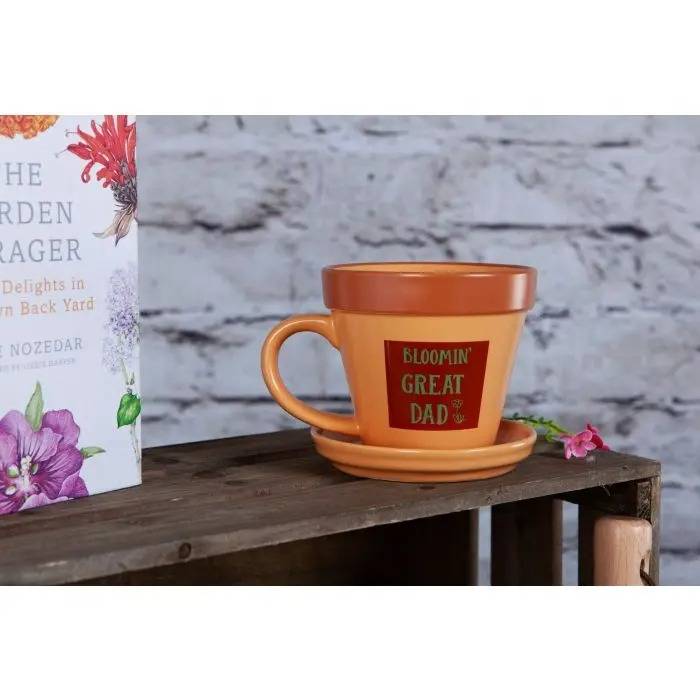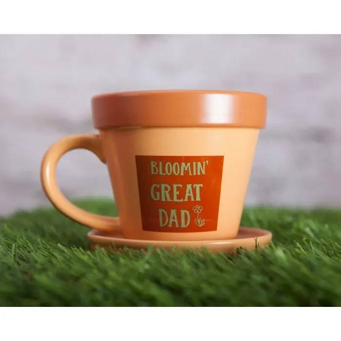 Let your Dad know just how bloomin’ great he is with this hilarious novelty gardening mug! Stylishly designed to look like a traditional plant pot and complete with matching saucer and decorative gift packaging, this terracotta coloured mug is a necessity when it comes to having a tea or coffee break on a hot day.