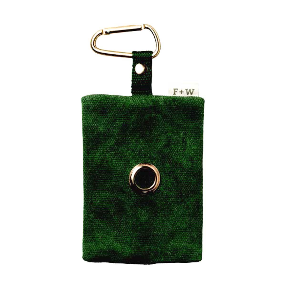 Ours is made from durable waxed canvas in green with quick-release brass finish carabiner and hardware.