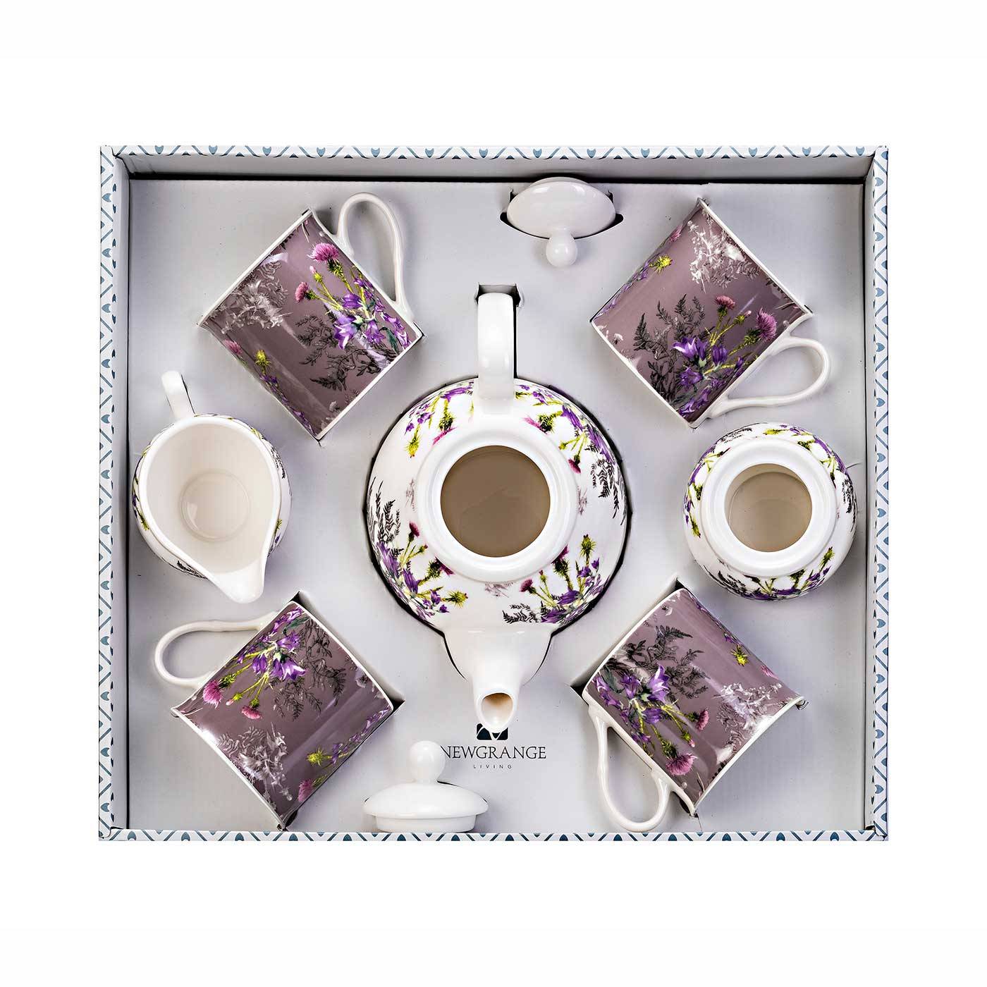 Purple Thistle 7 piece Bone China Tea Set - Newgrange Living