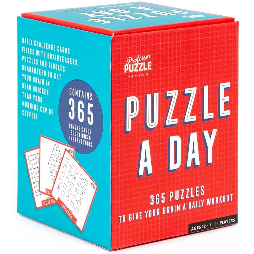 Puzzle a Day by Professor Puzzle is the ultimate brain-training companion designed to sharpen your mind every day of the year. With 365 unique puzzles, this set offers a diverse range of stimulating challenges that will have your brain firing on all cylinders faster than your morning coffee!