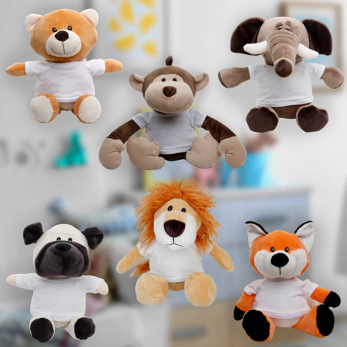Our personalised soft toy simply animals make a great gift! We print on their stylist t-shirt, you choose from the cutest animals!