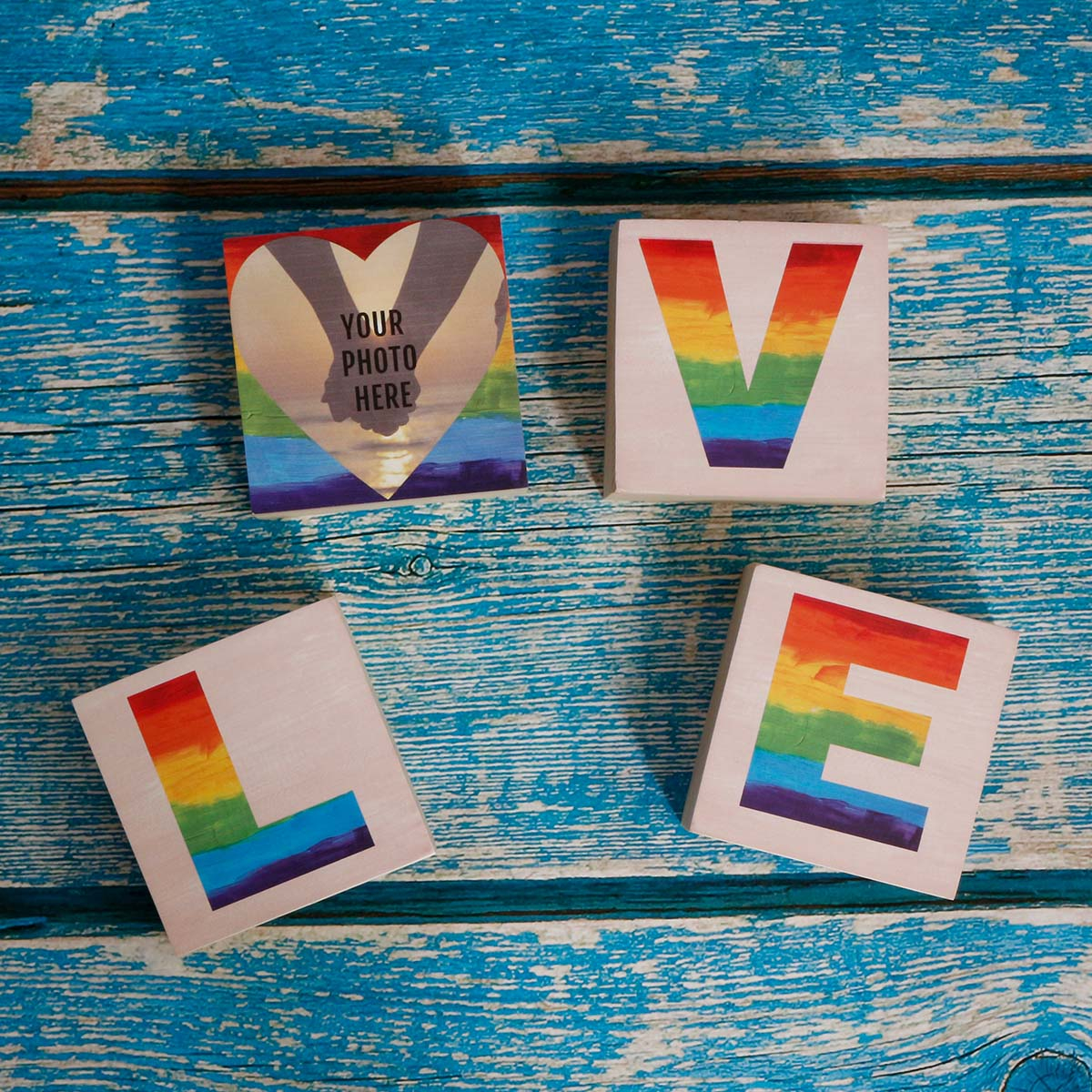 Rainbow Love Letters and Photo - 3x3 Wooden Photo Blocks