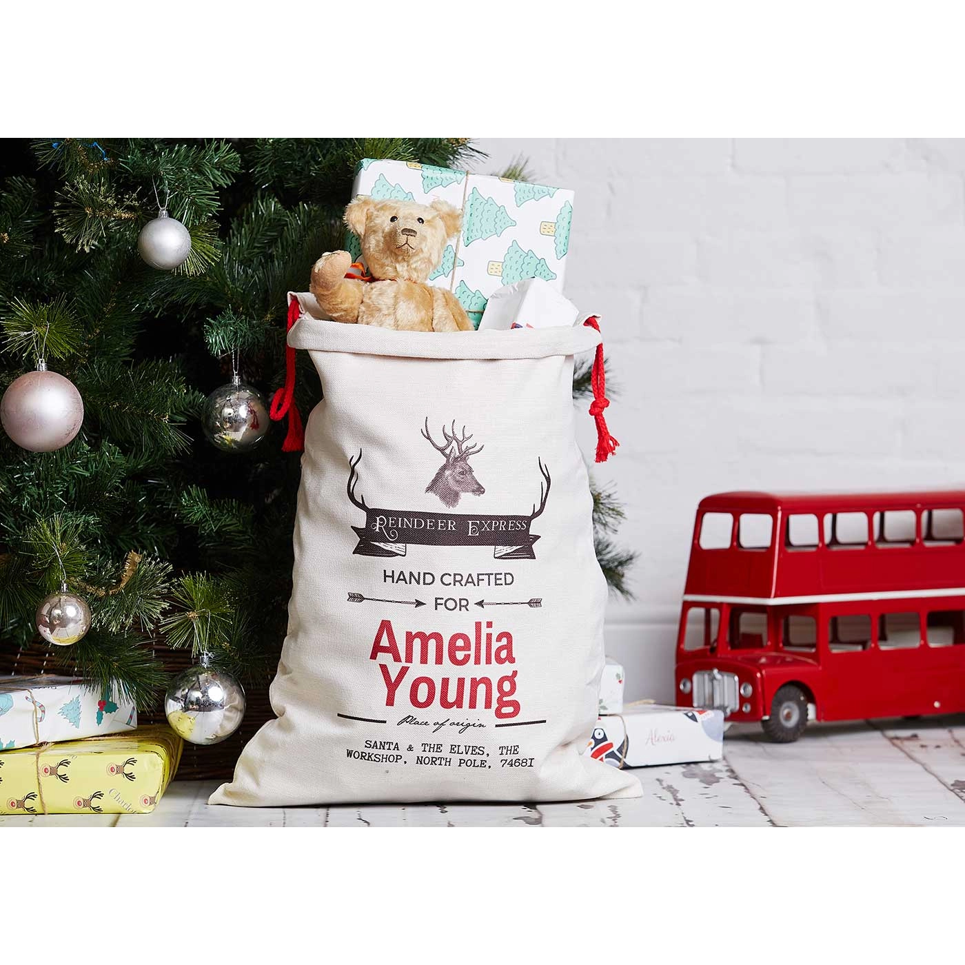 These beautifully designed personalised Santa Sacks will be enjoyed for many years. An alternative to a Christmas stocking, the sack is personalised with the recipient's name.